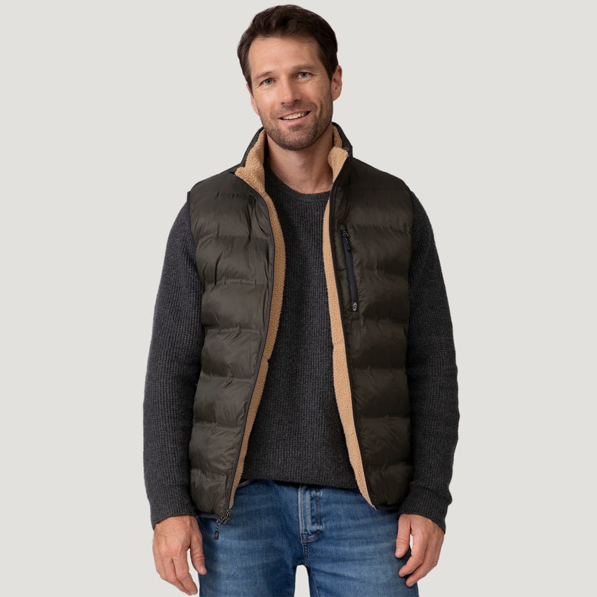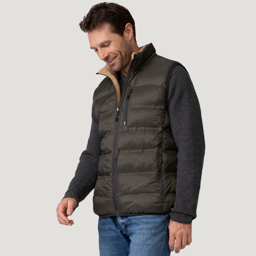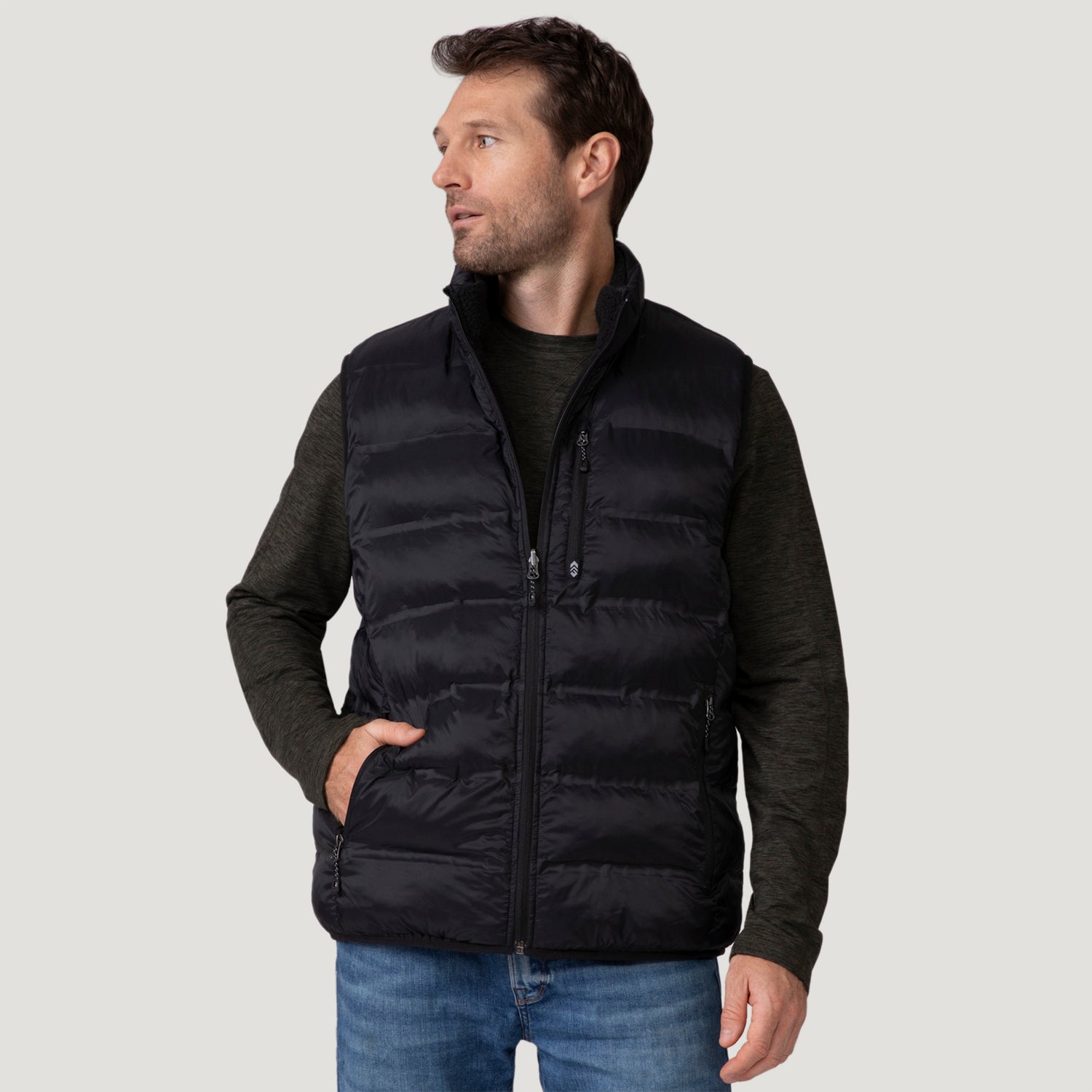 ![[Vince is 6'1" wearing a size Medium.] Man wearing the Free Country Men's Pine Creek Quilted Reversible Vest in black, featuring a quilted outer layer, cozy curly fleece reverse, and REPREVE® synthetic fill, styled with a black long-sleeve shirt and dark jeans.](http://freecountry.com/cdn/shop/files/222-MOF4626BLACK_BLACK_2406_FW24-039.jpg?v=1755013657&width=860)