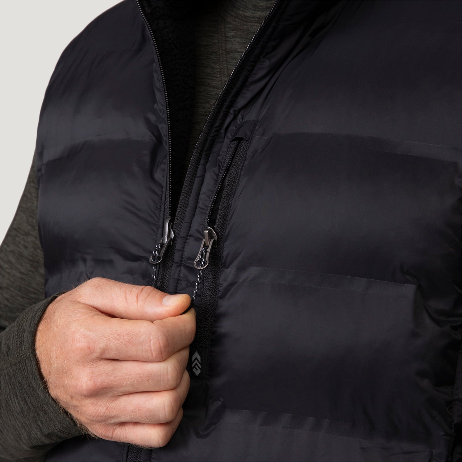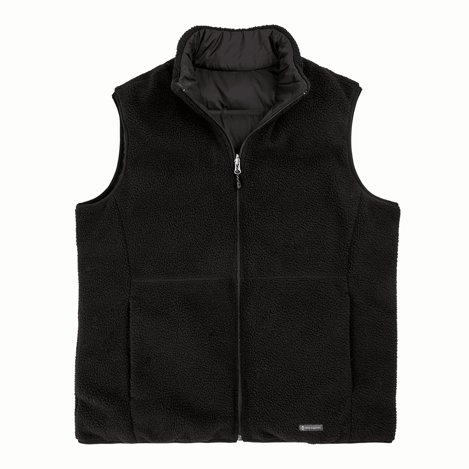 ![[Vince is 6'1" wearing a size Medium.] Man wearing the Free Country Men's Pine Creek Quilted Reversible Vest in black, featuring a quilted outer layer, cozy curly fleece reverse, and REPREVE® synthetic fill, styled with a black long-sleeve shirt and dark jeans.](http://freecountry.com/cdn/shop/files/222-MOF4626BLACK_BLACK_2406_FW24-118.jpg?v=1755013657&width=860)