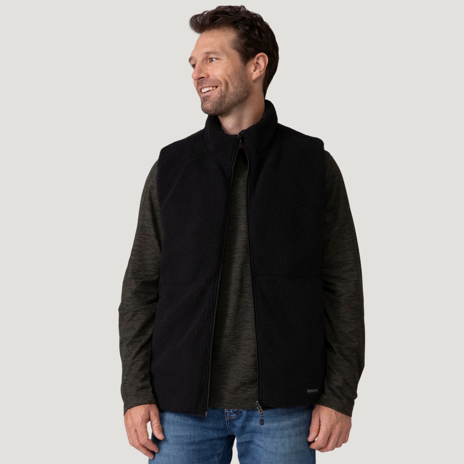 ![[Vince is 6'1" wearing a size Medium.] Man wearing the Free Country Men's Pine Creek Quilted Reversible Vest in black, featuring a quilted outer layer, cozy curly fleece reverse, and REPREVE® synthetic fill, styled with a black long-sleeve shirt and dark jeans.](http://freecountry.com/cdn/shop/files/222-MOF4626BLACK_BLACK_2406_FW24-025.jpg?v=1754407722&width=860)