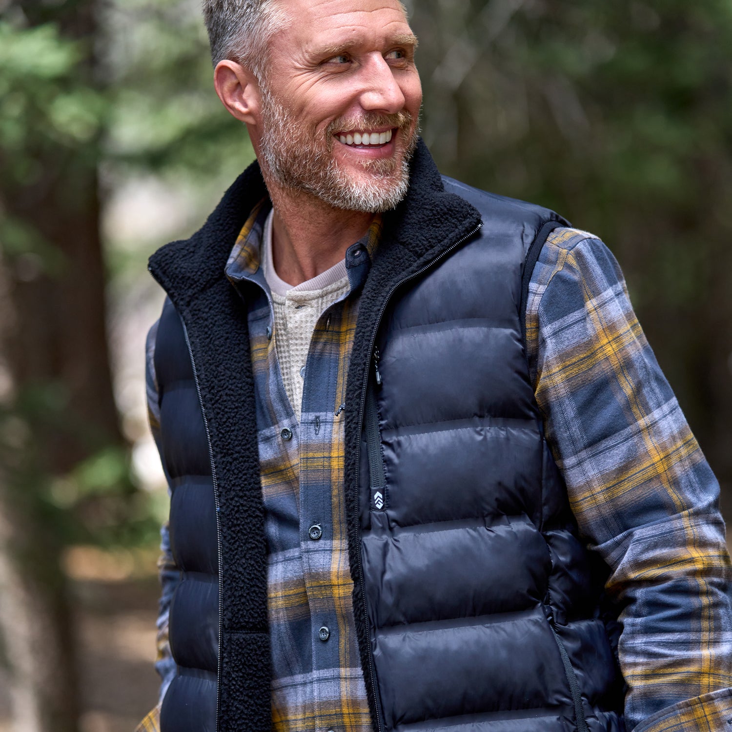 Elevate your wardrobe with a vest that embraces sustainability without compromising on style. Warmth meets conscience with the REPREVE® high-quality synthetic fill—thoughtfully made from recycled plastic bottles—giving you the freedom to move and explore without feeling weighed down. Even better: This versatile vest effortlessly transforms from a quilted outer layer to a soft and snuggly curly fleece option, supplying you two looks for the price of one. Machine washable for your convenience, the Pine Creek Vest is designed for easy care, ready to accompany you on all your outdoor escapades.