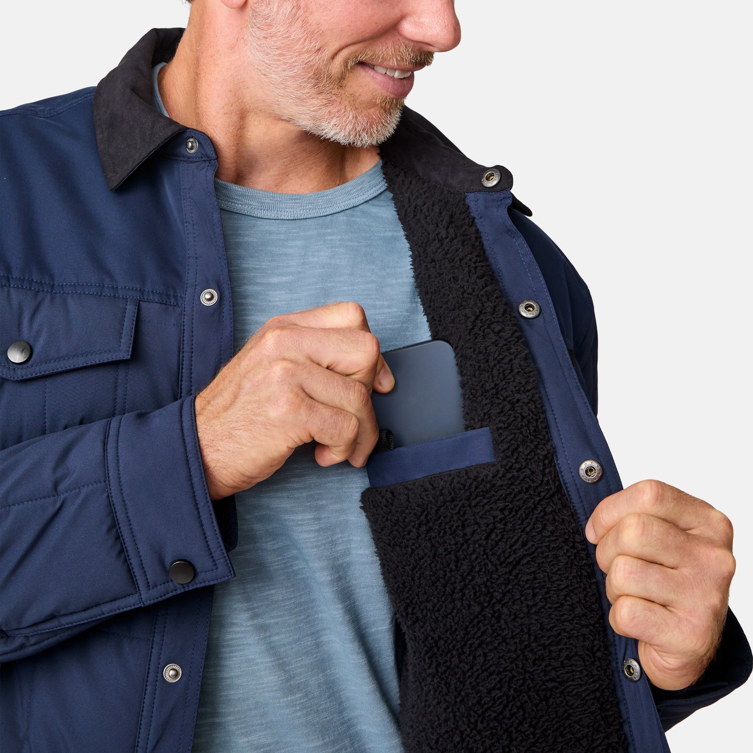It’s time to elevate your everyday look! Crafted from 100% recycled polyester, this jacket blends rugged style with eco-friendly tech. Its mechanical stretch fabric and sherpa lining deliver unbeatable warmth, while the REPREVE® synthetic fill (made from recycled plastic bottles!) adds extra coziness. A faux-suede overlay and box quilted design keep you looking sharp, while the water-resistant fabric ensures you stay dry. Snap front closures and adjustable cuffs provide a custom fit, and the chest and lower pockets keep your essentials secure.