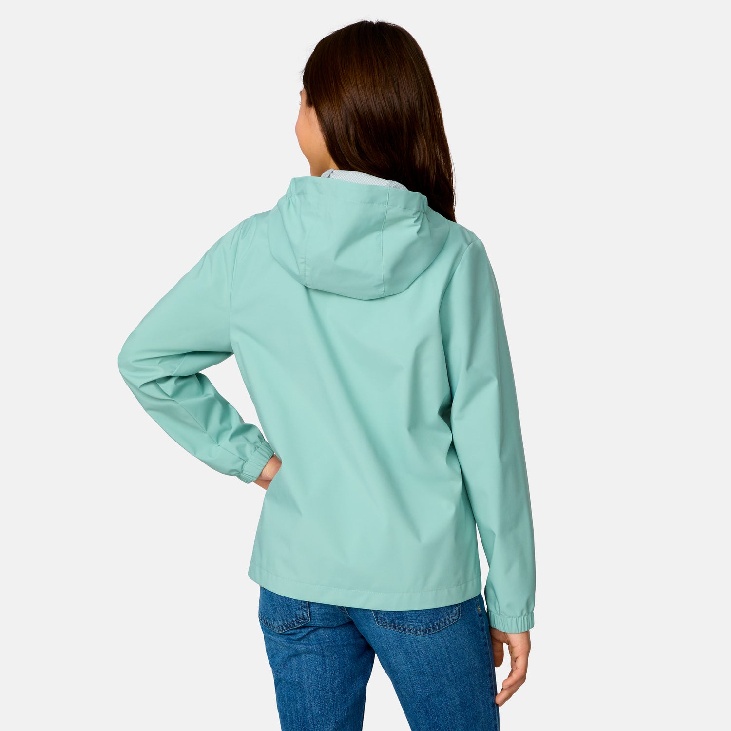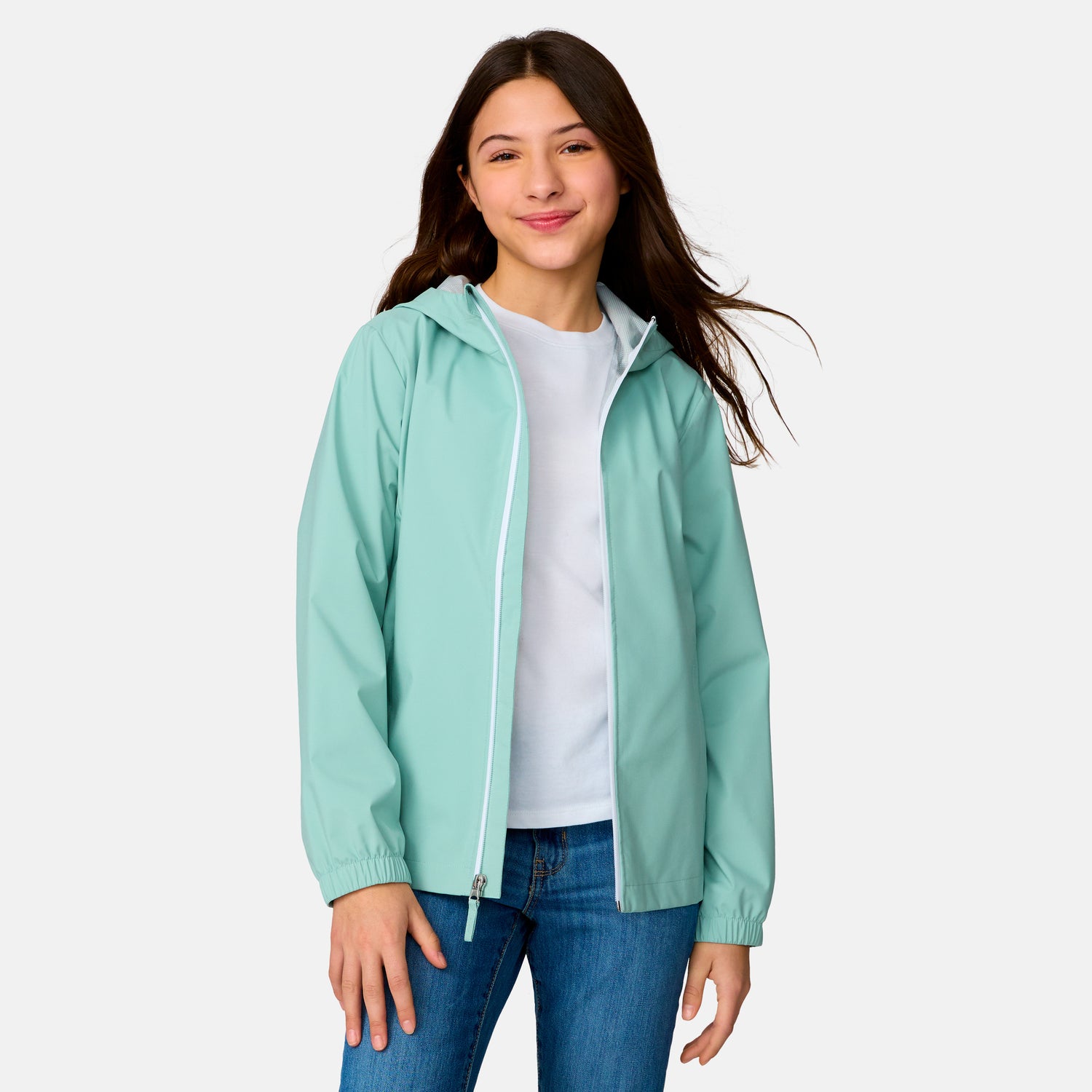 ![[Model is wearing a size Medium.] Girl wearing the Free Country Girls' Recess X2O Rain Jacket in Green Tea, size M, featuring lightweight stretch weatherproof fabric and a full length zipper and attached hood, paired with blue jeans #color_ green-tea](http://freecountry.com/cdn/shop/files/212KOS5006_Green-Tea_SS25-FC-PDP_6.jpg?v=1750783629&width=860)