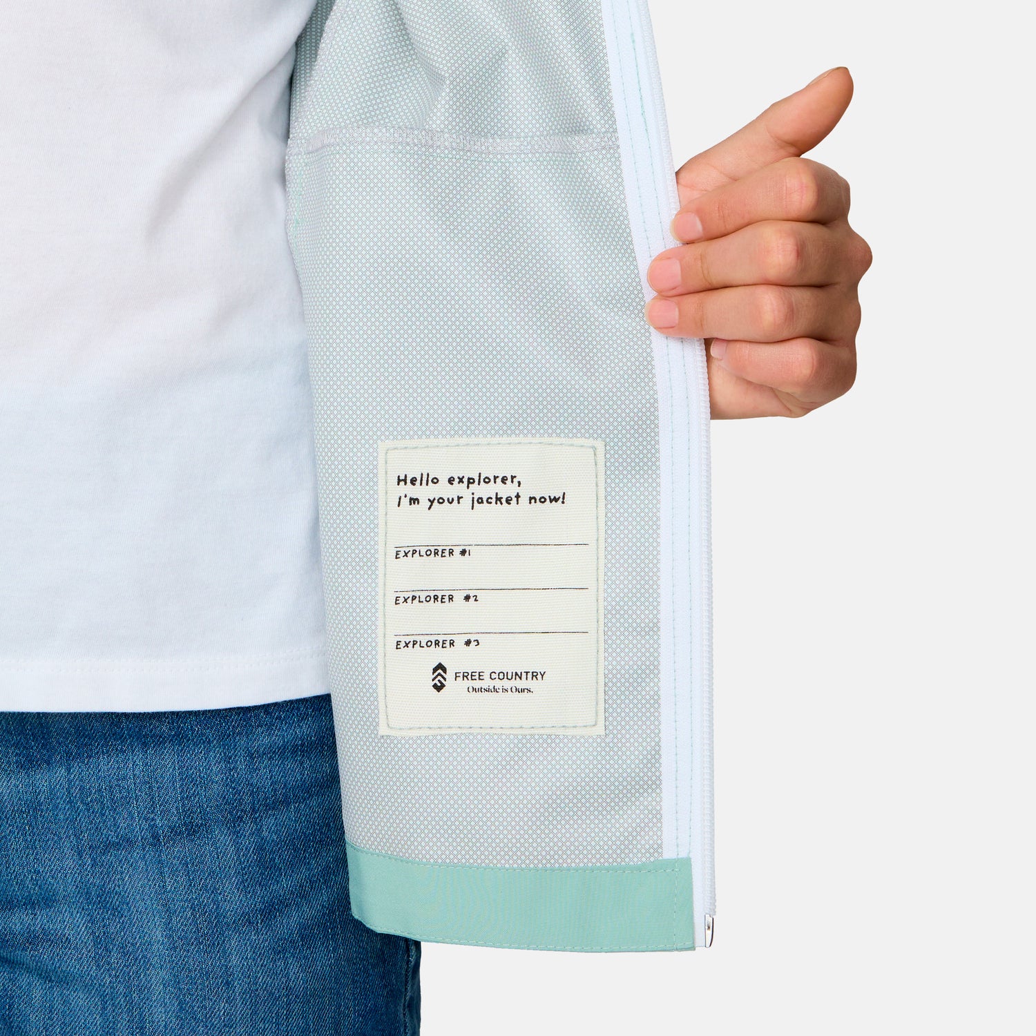 ![[Model is wearing a size Medium.] Girl wearing the Free Country Girls' Recess X2O Rain Jacket in Green Tea, size M, featuring lightweight stretch weatherproof fabric and a full length zipper and attached hood, paired with blue jeans #color_ green-tea](http://freecountry.com/cdn/shop/files/212KOS5006_Green-Tea_SS25-FC-PDP_1.jpg?v=1750783729&width=860)