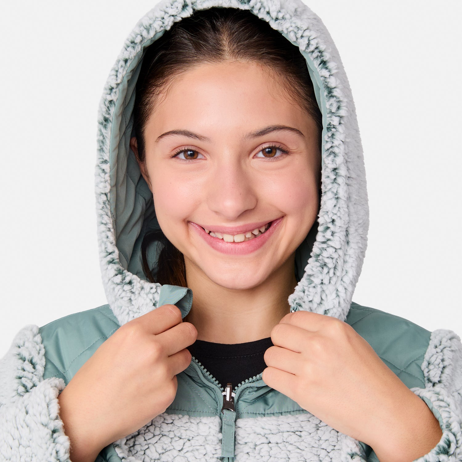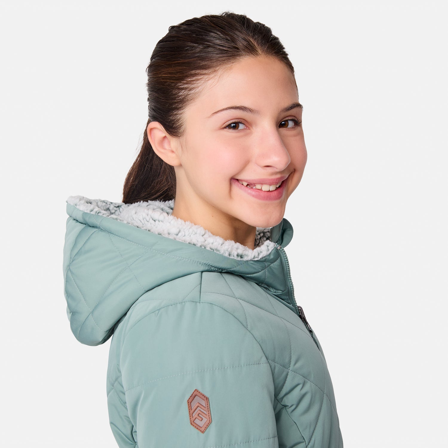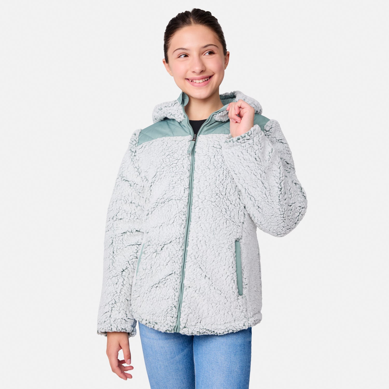 Perfect for the girl who loves options, this reversible jacket is a wardrobe win. One side features a sleek diamond-quilted pattern for a classic vibe, while the other wraps her in soft sherpa for ultimate snuggle-worthy warmth. The full zip front makes it easy to switch up her look, and the attached hood is ready for whatever the weather brings. Plus, it’s machine washable, so she can wear it on repeat without a worry. Versatile, stylish and oh-so-cozy—this two-in-one eco-friendly wonder effortlessly matches every mood and outdoor setting with ease.