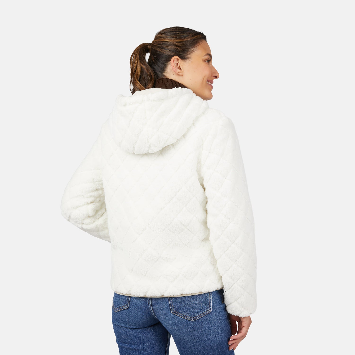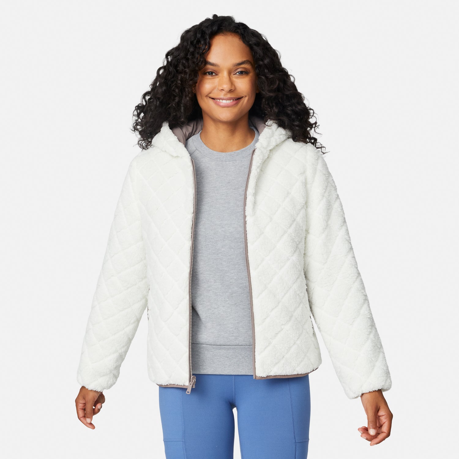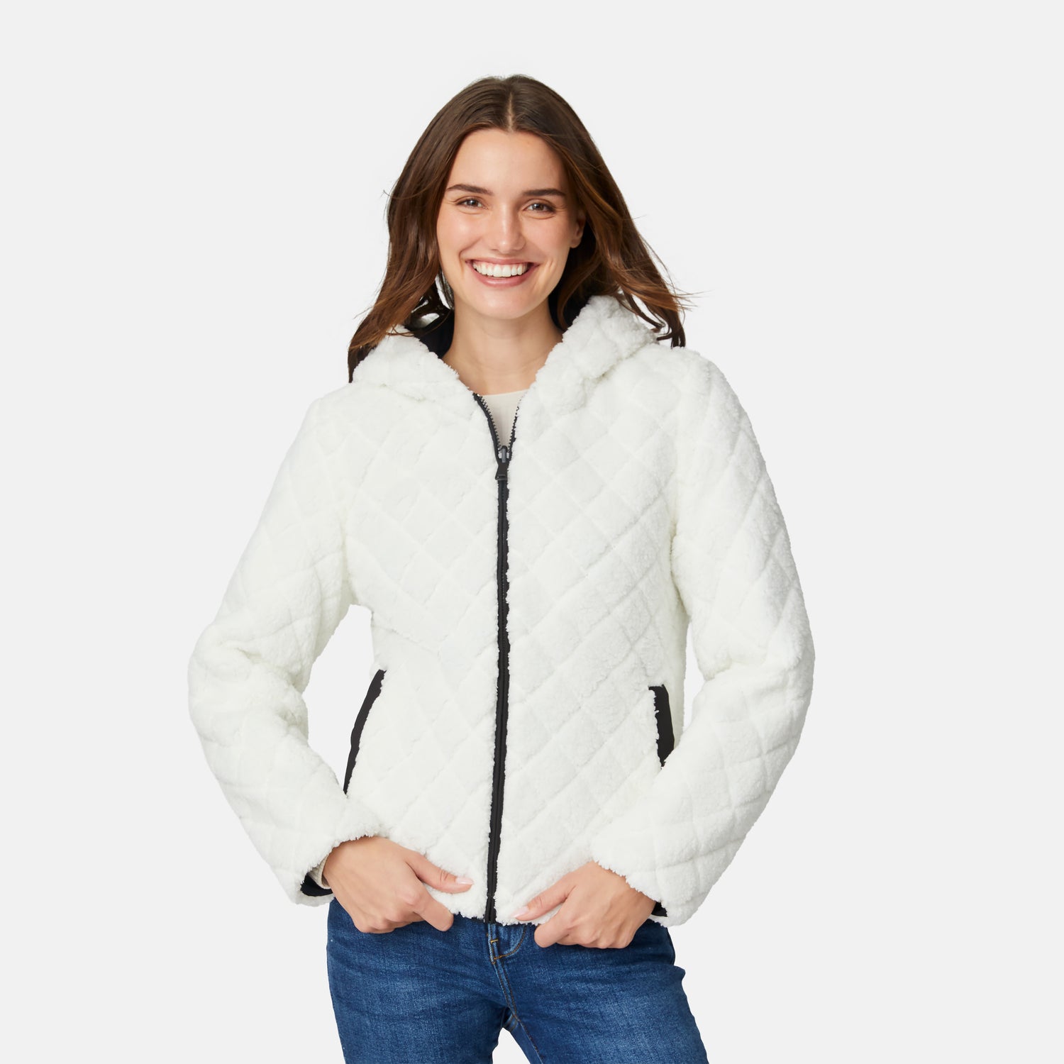 Flip it and reverse it: one side features sleek novelty quilting for wind-resistant coverage, while the other side showcases ultra-soft embossed diamond sherpa for maximum cozy vibes. From trail hikes to town errands,this quilted jacket is your everyday cold-weather hero with just the right balance of function and style.