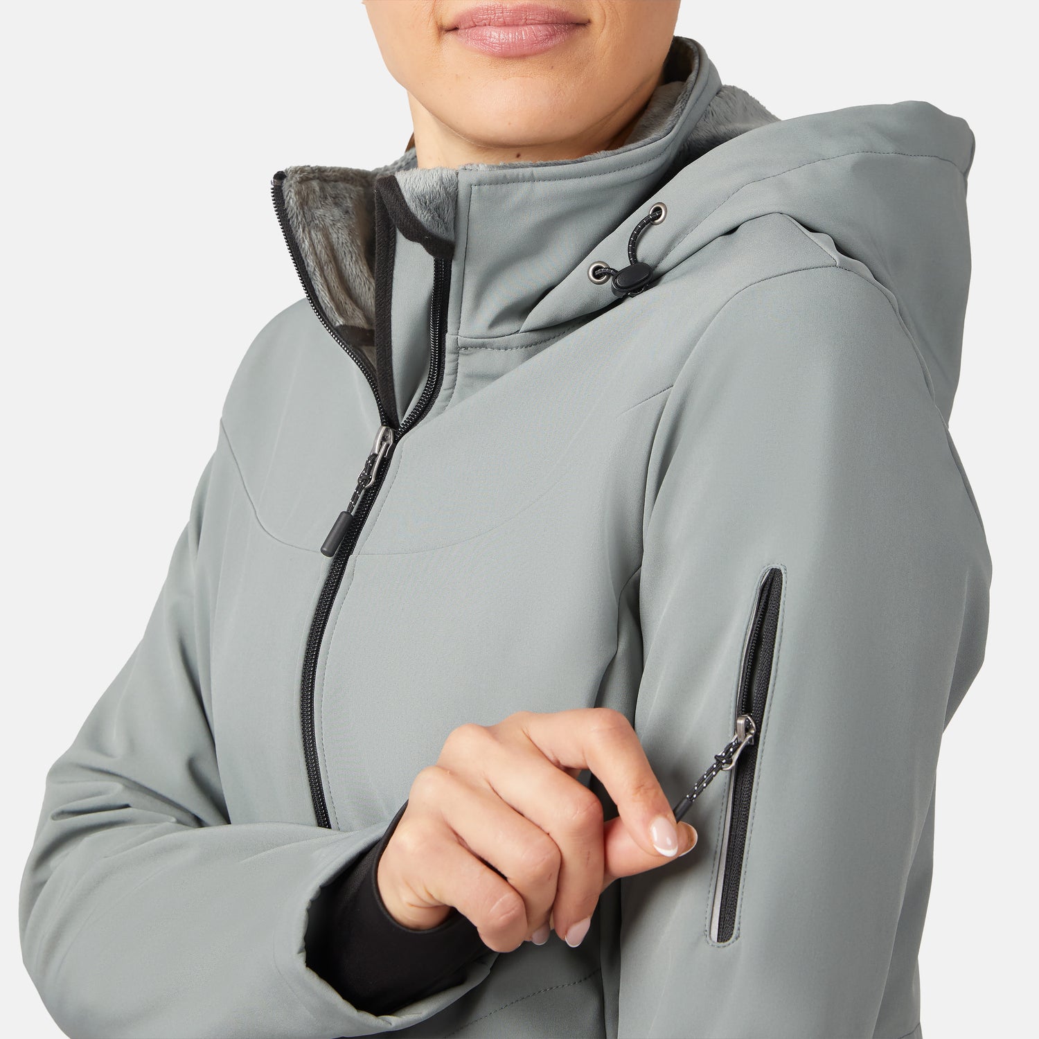 The StormTech Super Softshell® Jacket is your go-to gear for conquering the elements in style and comfort! With a cozy Butter Pile® lining, this wind- and water-resistant jacket guarantees you stay dry and warm no matter what Mother Nature throws your way. Four-way stretch provides unparalleled freedom of movement for all your outdoor adventures. The attached hood with an adjustable drawcord lets you personalize your fit, while the full-zip front closure ensures easy wear for quick temperature adjustments. Want a more tailored look? Simply cinch the adjustable interior drawcord at the waist for a flattering silhouette.