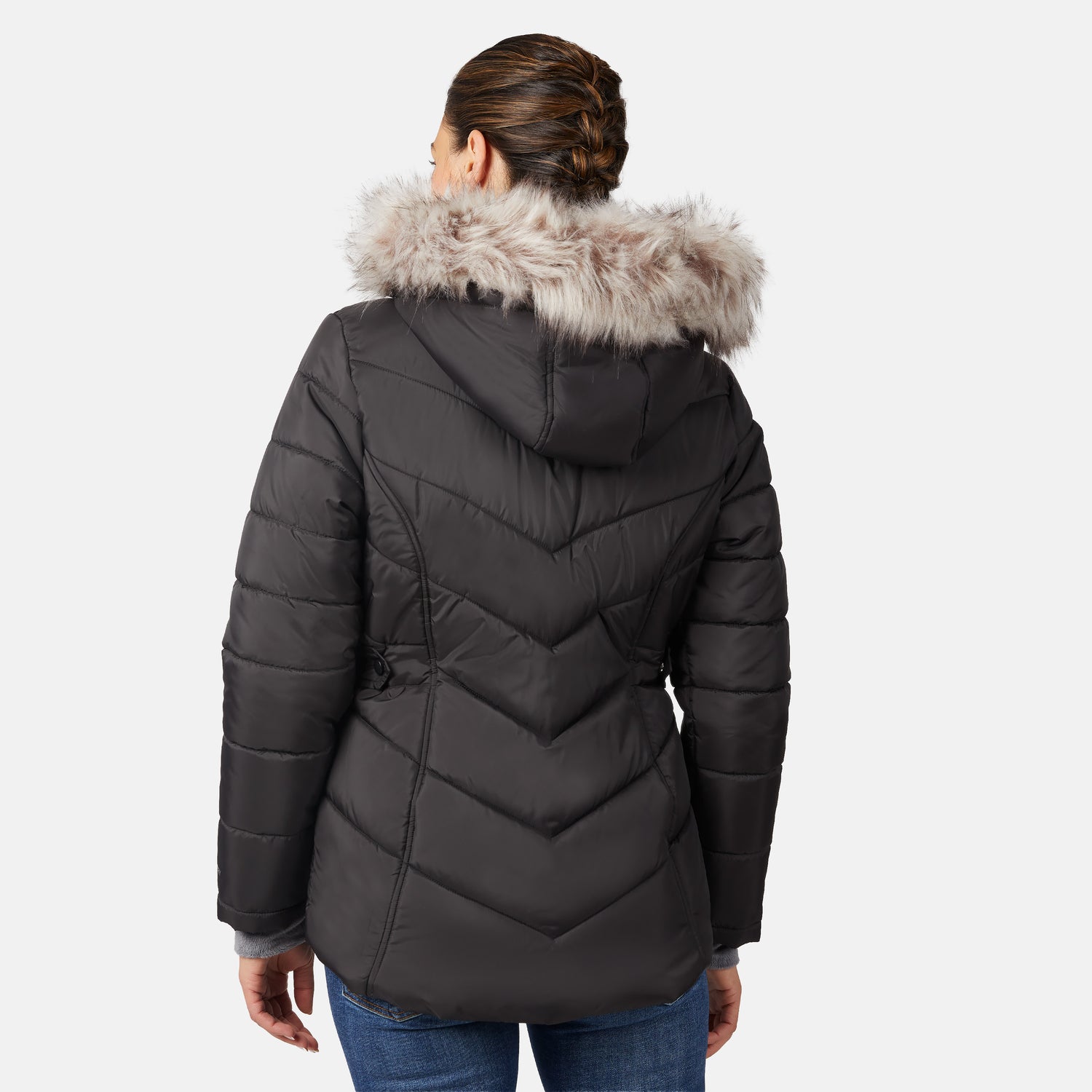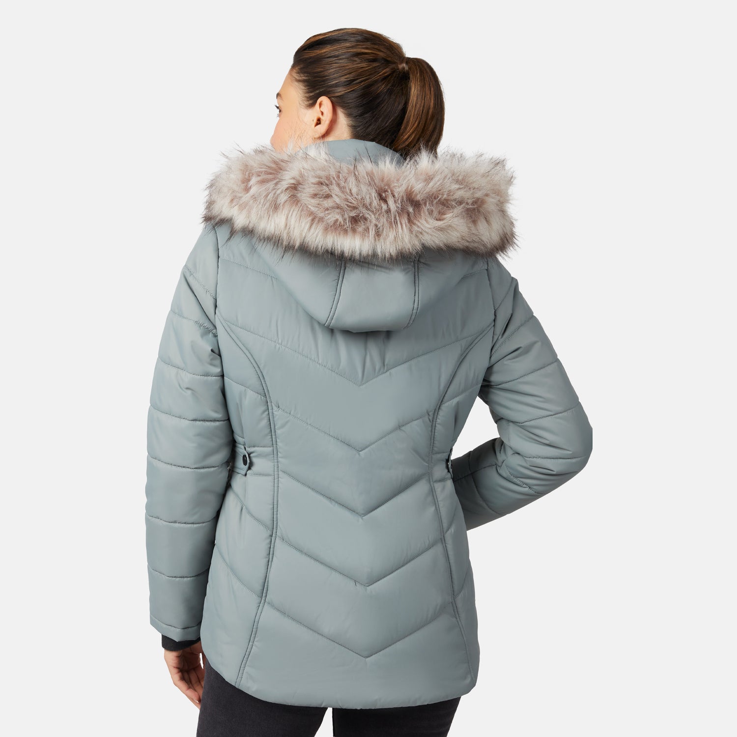 Wind and rain are no match for this jacket, and its detachable hood with faux-fur trim adds a stylish touch. Need a sleeker silhouette? Simply adjust the side tabs with snap closures for a custom fit. Machine-washable for easy care, this wardrobe essential is designed to keep you unstoppable, no matter what Mother Nature throws your way!