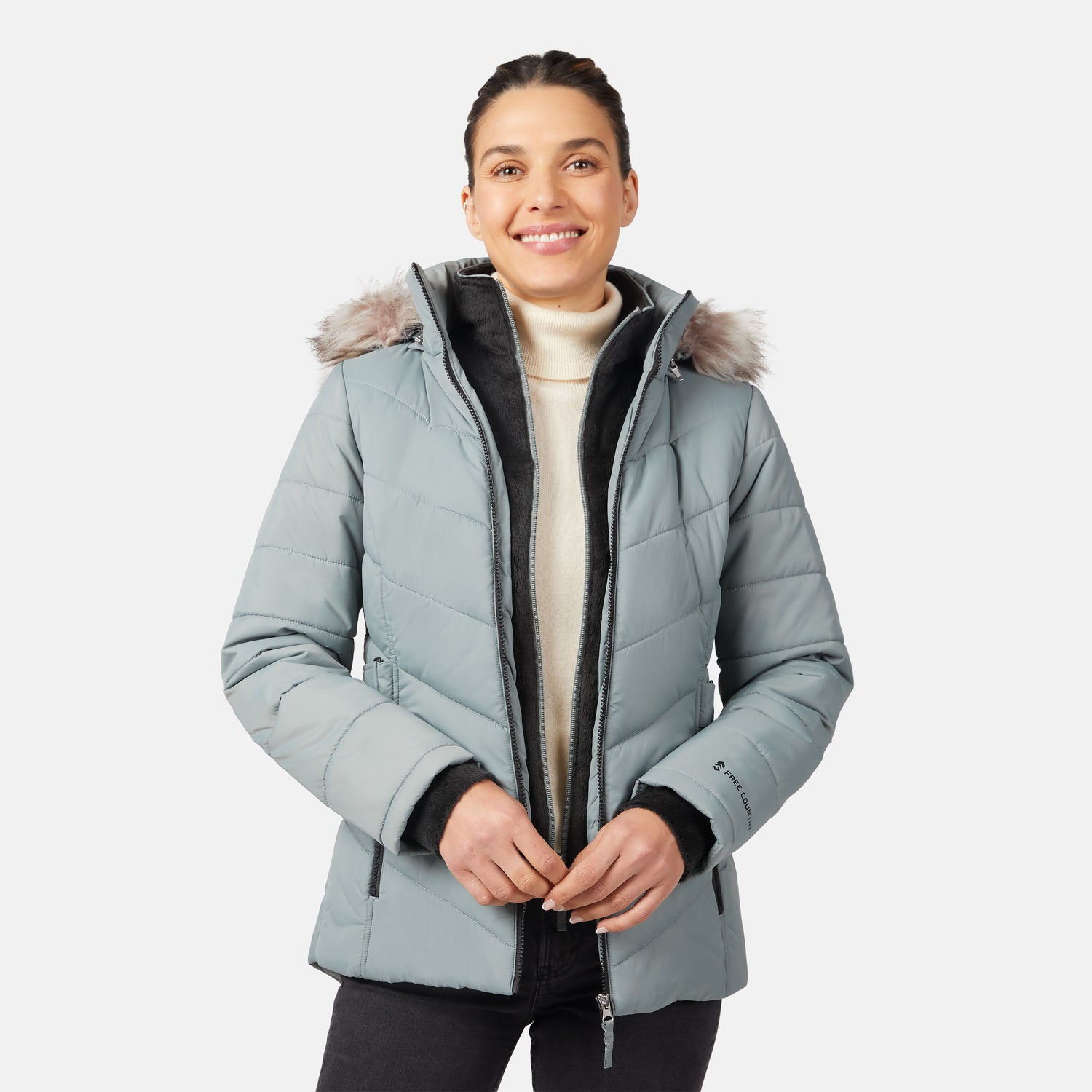 ![[Olga is 5'9" wearing size S.] Model wearing green quilted jacket with faux fur hood and attached bib ā layered warmth and stylish silhouette for winter outings](http://freecountry.com/cdn/shop/files/52LOF5725_CYPRUS_034_FC.jpg?v=1757709238&width=860)