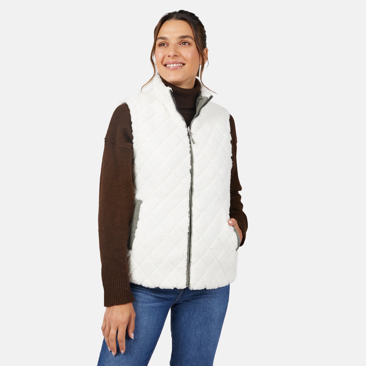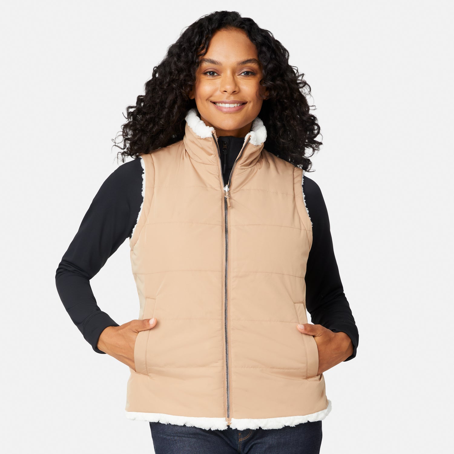 Flip your style with our eco-conscious reversible vests. These versatile layers feature a weatherproof shell and a soft, cozy fabric on the reverse side for warmth and comfort—perfect for flipping your style while staying warm and comfortable.