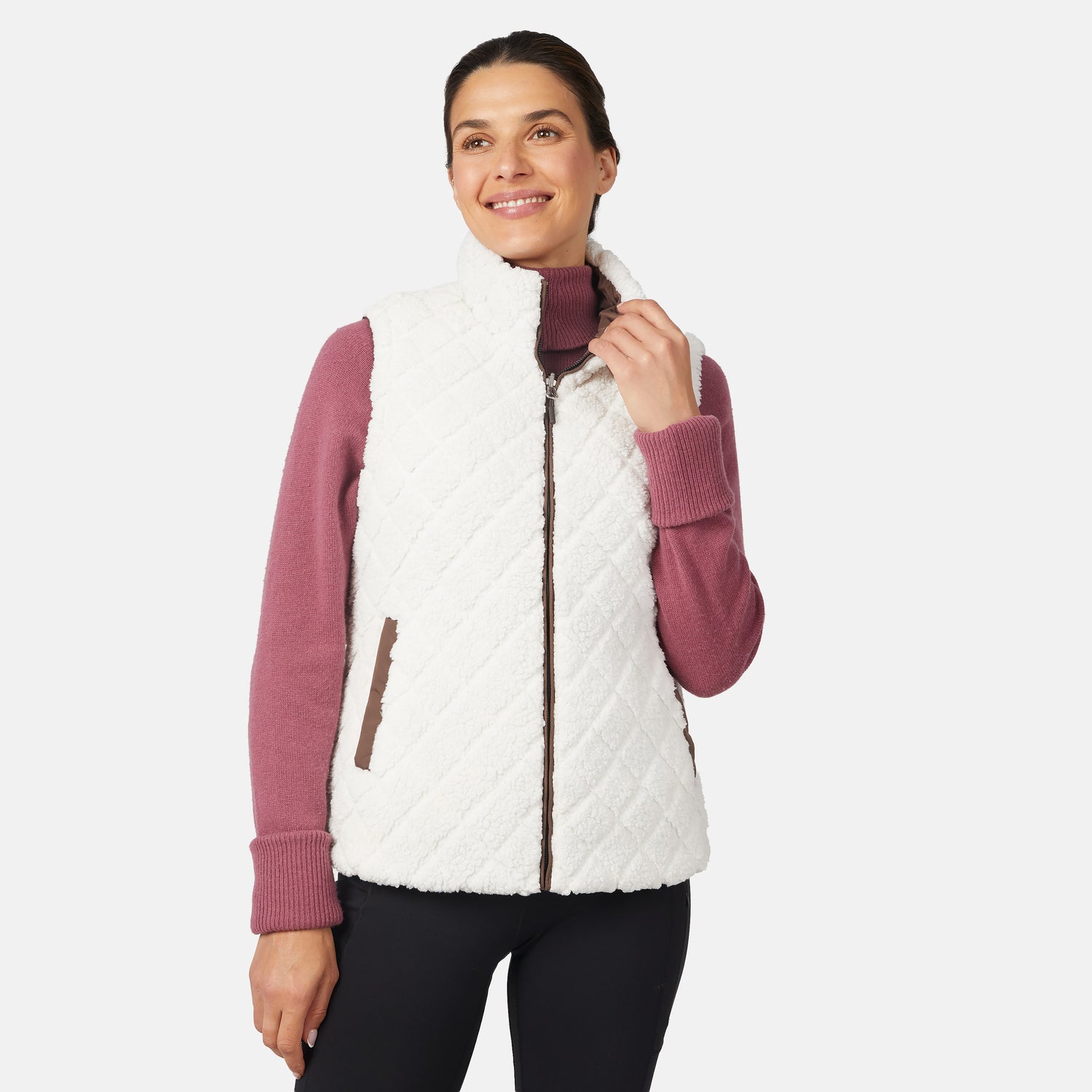 The reversible design gives you two versatile looks: a sleek, quilted exterior and a cozy, embossed diamond Butter Pile® interior. With 4-way stretch fabric, wind-resistant protection, and a stand collar for added coverage, this vest is made to move with you—whether you're hiking, traveling, or layering up for a chilly morning walk.