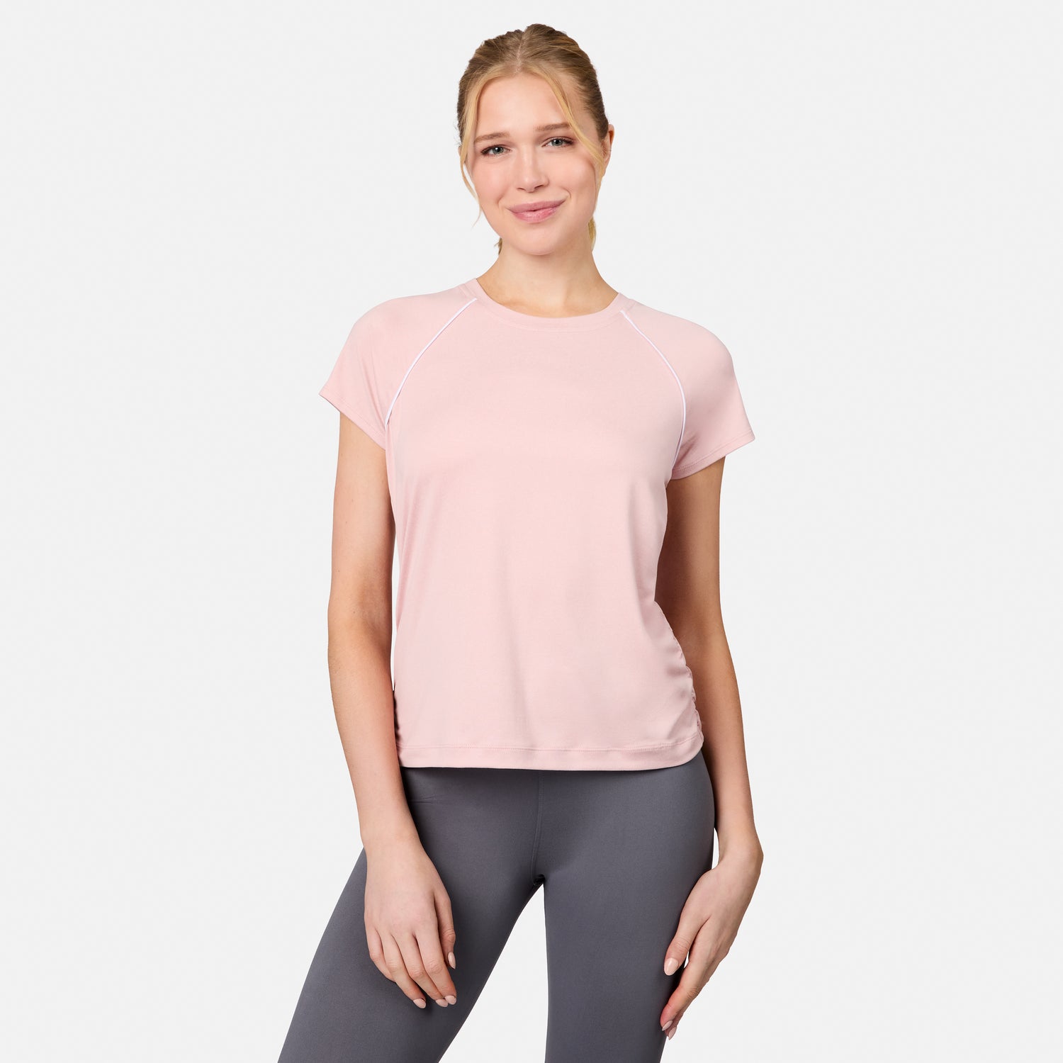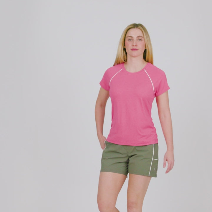 Cooling Microtech® fabric, UPF protection, and anti‑odor technology make this Shirred Crew your go‑to for active days. With breathable stretch, shoulder piping, and a textured shirred hem, it blends performance and polish in one easy, flattering layer.