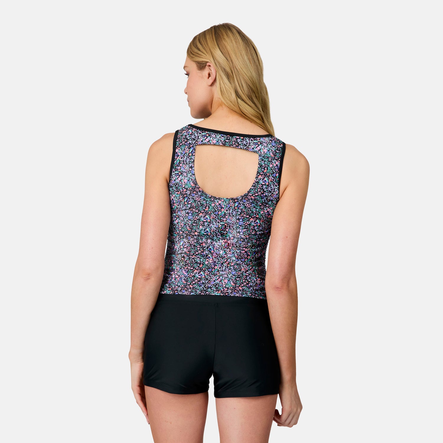 This fashionable tankini top is designed for the water, but transitions to post-swimming activities seamlessly. It's what's on the inside that counts here: a shelf bra with set-in molded cups provides shape and support without any harsh underwire. Packed with performance details—like UPF 50+ protection, four-way stretch and quick-drying technology—it’s perfect for action-filled days in the sun. To build a better basic, we added a stylish cut-out detail on the back, plus full side shirring with adjustable ties so you can create a cropped or customized length to suit your style.