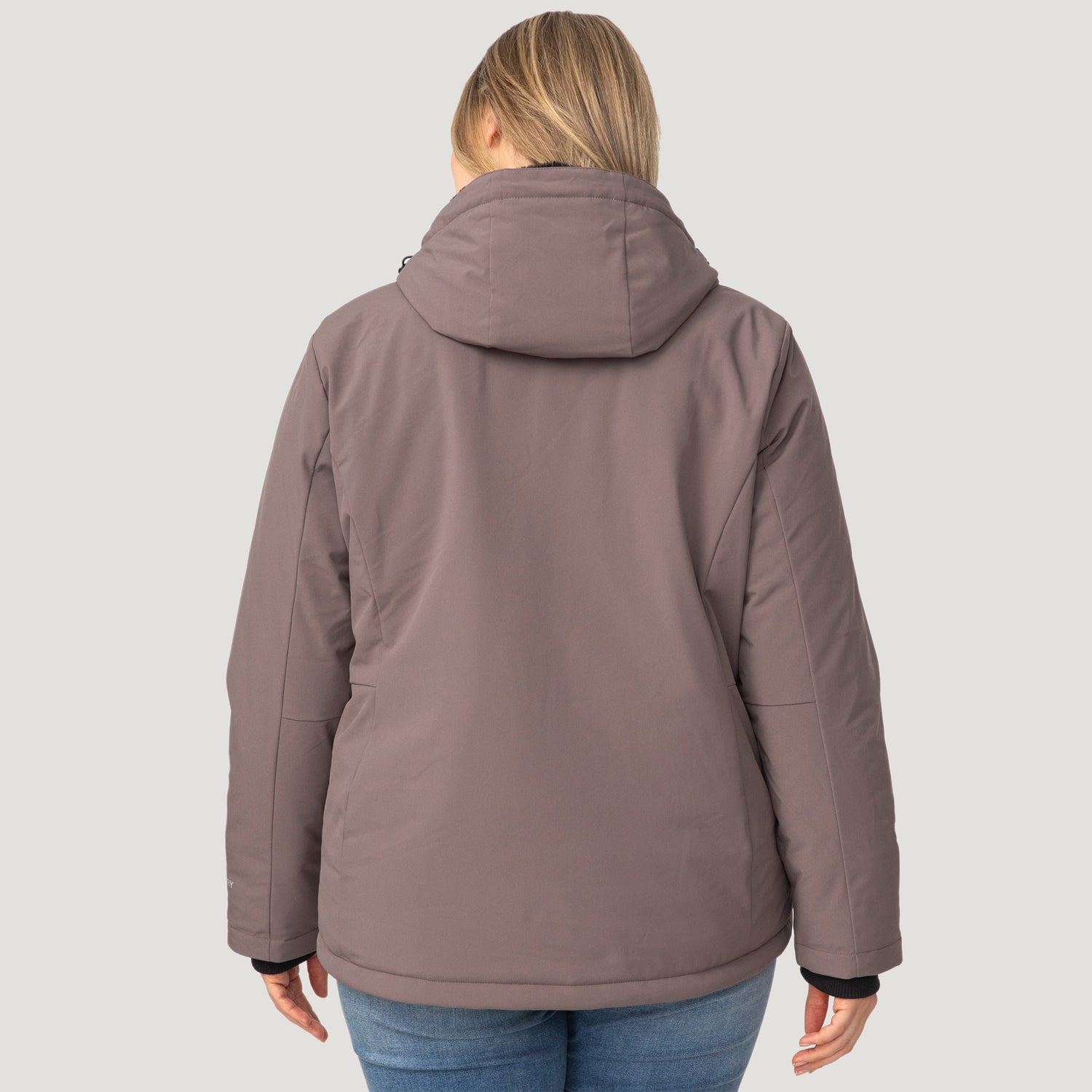 ![[Angela is 5'10" wearing a size 1X.] Woman wearing Free Country Women's Plus Size FreeCycle® Thermo Super Softshell® II Jacket in brown with a full front zipper opening, lower pockets, soft lining, a detachable hood with an adjustable drawcord, and water resistant and wind resistant stretch performance fabric, light grey background. Best women’s jacket for winter weather.](http://freecountry.com/cdn/shop/files/14LOF4265XDRIFTWOOD_2408_FW24-110.jpg?v=1759430466&width=860)