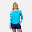 Women's Long Sleeve Swim Shirt with Built-in Bra - SRLSS5603 / Tidal Tracks Caribbean / XS is backordered and will ship as soon as it is back in stock.