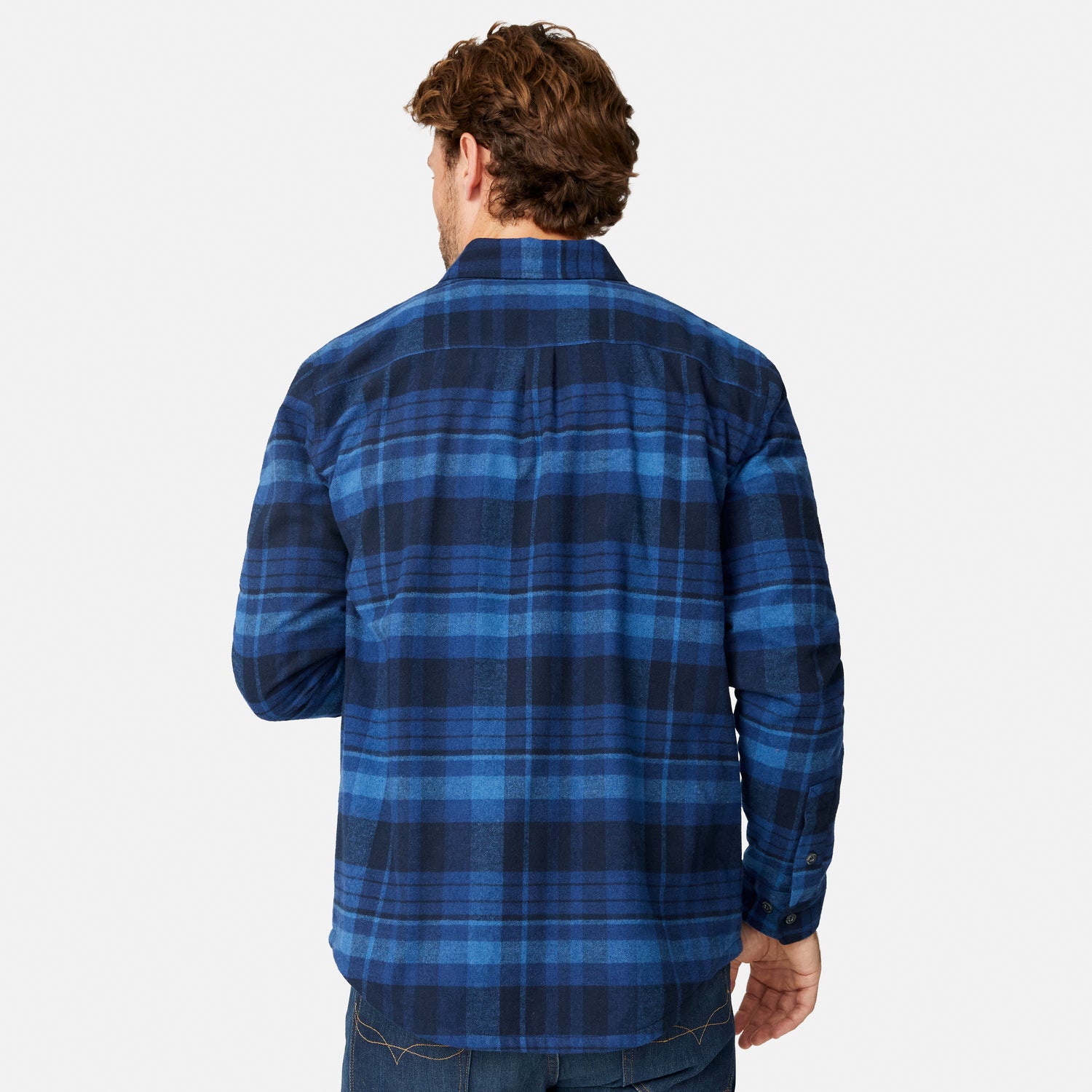 - Plaid flannel shirt jacket with micro fleece lining