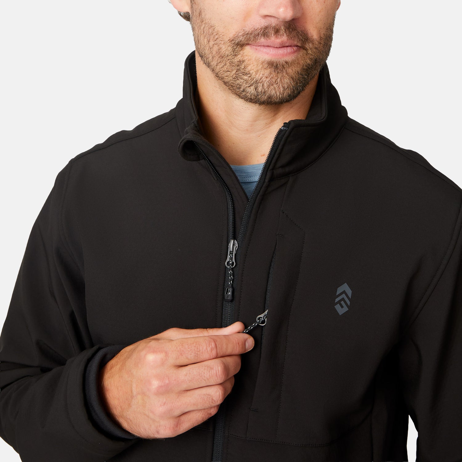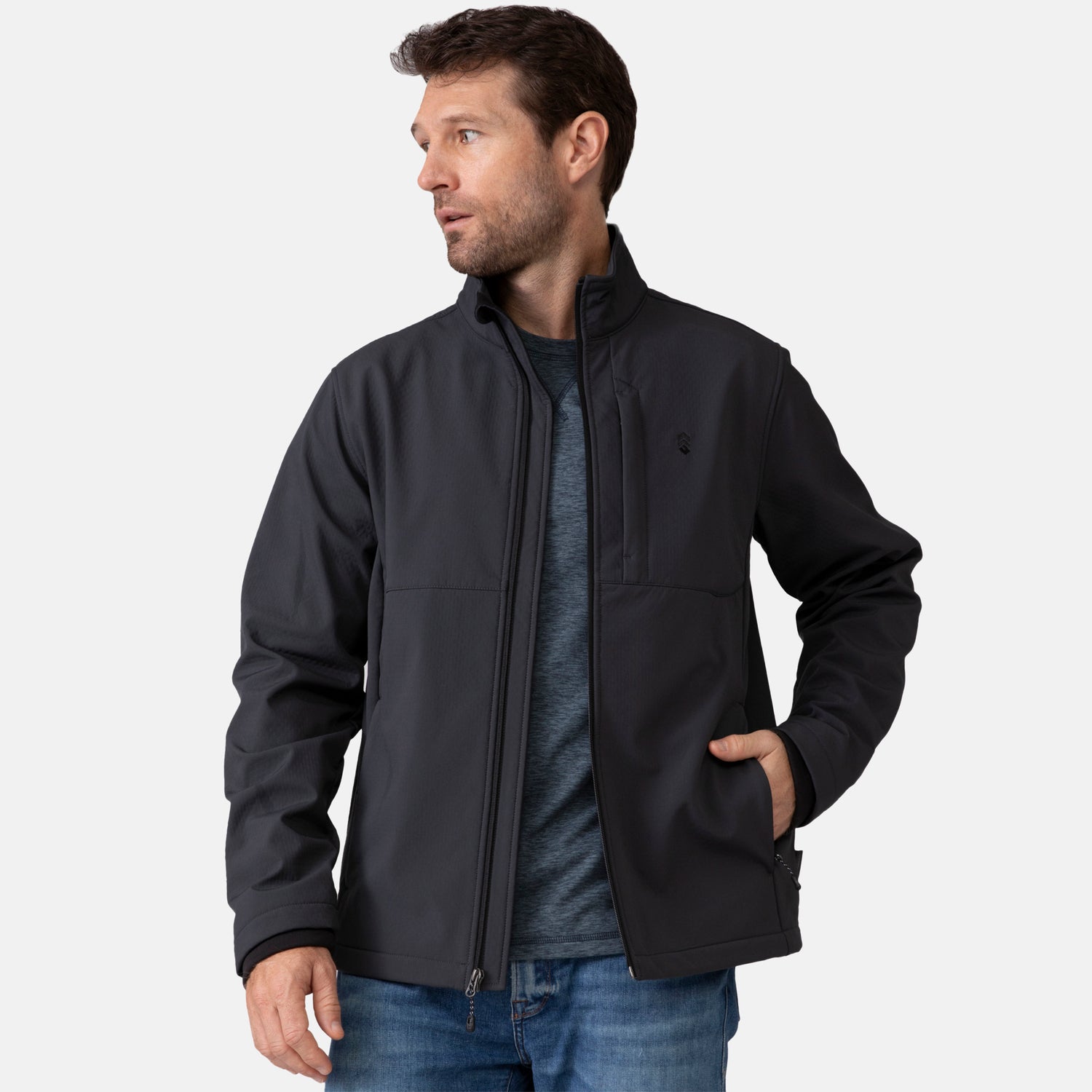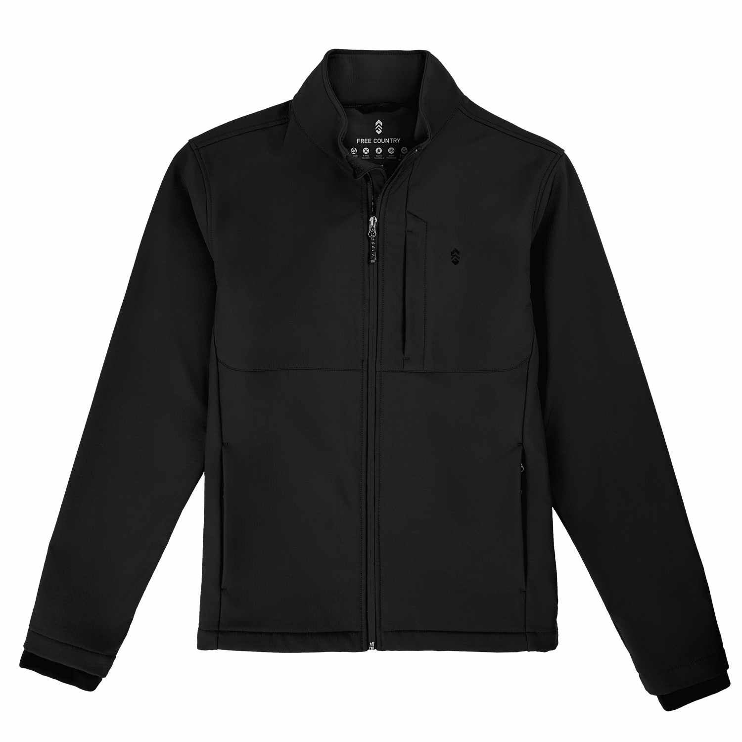 ![[Matt is 6'2" wearing size M.] Men’s Free Country black zip-front softshell jacket with high stand collar, subtle chest logo, and minimalistic design—featuring streamlined silhouette and long sleeves. Worn with blue pants for a clean, versatile look suited to cool-weather outings.](http://freecountry.com/cdn/shop/files/543MOF3138SJETBLACK_070.jpg?v=1757946876&width=860)