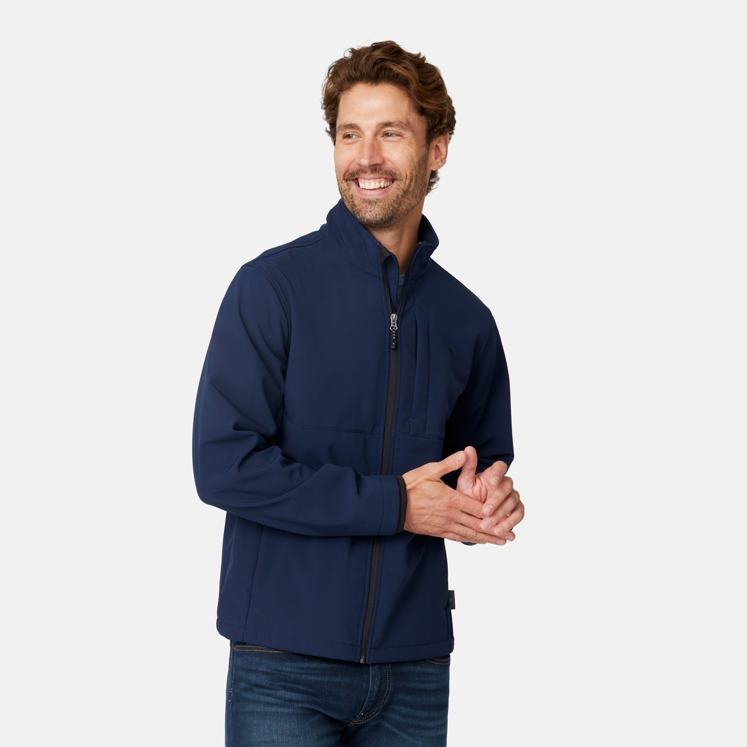 ![[Joe is 6'0" wearing size M.] Men’s Free Country navy blue zip-front softshell jacket with high stand collar, subtle chest logo, and minimalistic design—featuring streamlined silhouette and long sleeves. Worn with blue pants for a clean, versatile look suited to cool-weather outings.](http://freecountry.com/cdn/shop/files/543MOF5138_STORM_407_FC.jpg?v=1757947778&width=860)