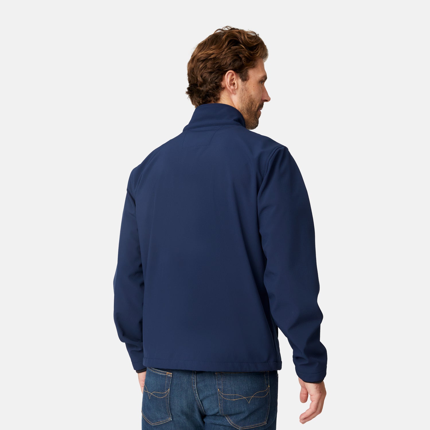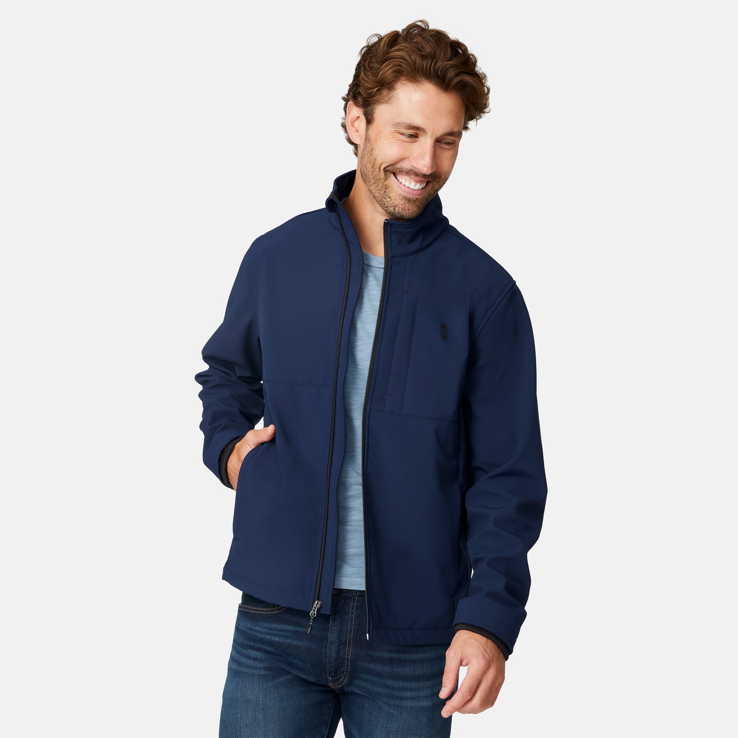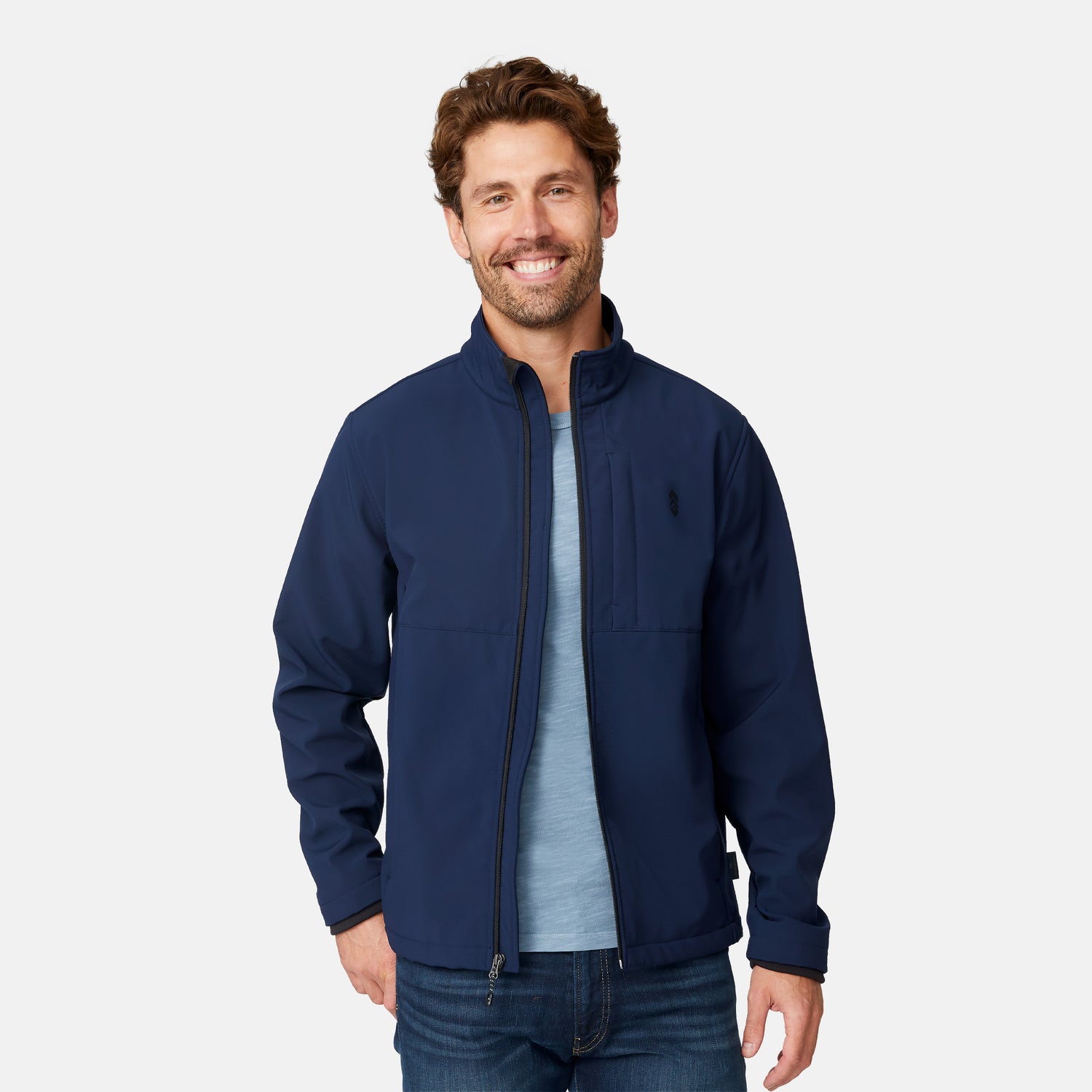 ![[Matt is 6'2" wearing size M.] Men’s Free Country navy zip-front softshell jacket with high stand collar and minimalistic design, worn over a light blue shirt and paired with blue jeans—delivering a clean, everyday look with subtle utility and transitional weather appeal.](http://freecountry.com/cdn/shop/files/543MOF5138NAVY_108_FC.jpg?v=1757946876&width=860)