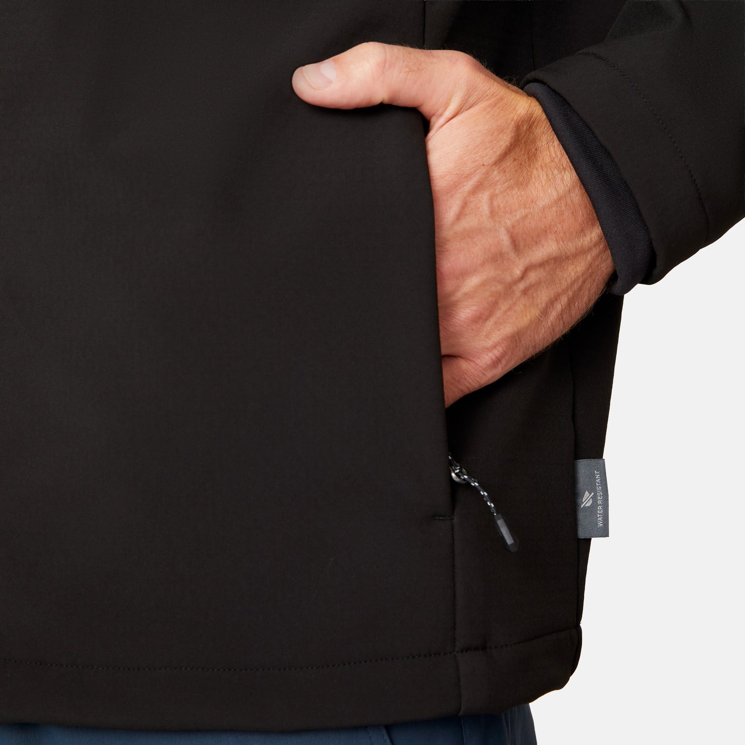 ![[Matt is 6'2" wearing size M.] Men’s Free Country black zip-front softshell jacket with high stand collar, subtle chest logo, and minimalistic design—featuring streamlined silhouette and long sleeves. Worn with blue pants for a clean, versatile look suited to cool-weather outings.](http://freecountry.com/cdn/shop/files/543MOF3138SJETBLACK_024.jpg?v=1757946876&width=860)