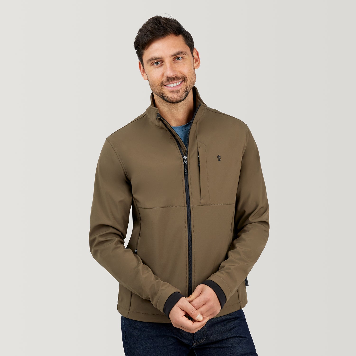 ![[Joe is 6'0" wearing size M.] Men’s Free Country olive green zip-front softshell jacket with high stand collar, subtle chest logo, and minimalistic design—featuring streamlined silhouette and long sleeves. Worn with blue pants for a clean, versatile look suited to cool-weather outings.](http://freecountry.com/cdn/shop/files/543MOF5138_OLIVE_331_FC.jpg?v=1757947705&width=860)