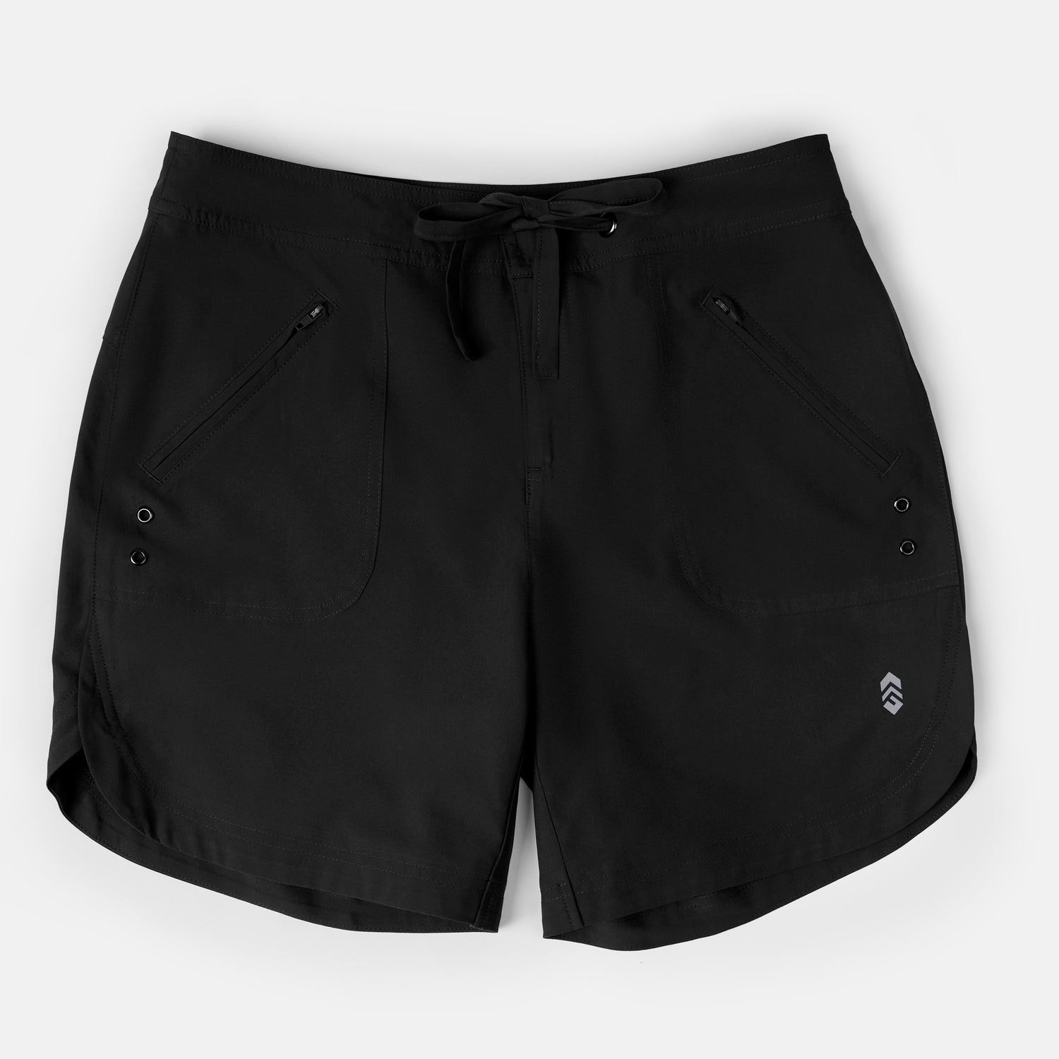 ![[Model is wearing a size Small.] Woman wearing Free Country Women's 7" Bermuda Board Short in Black, size S, made from quick drying UPF stretch performance fabric featuring a fly front zipper closure with a drawcord and two front pockets](http://freecountry.com/cdn/shop/files/SWLSS3532_BJs291288_BLACK_2302_SS23-007.jpg?v=1751309823&width=860)