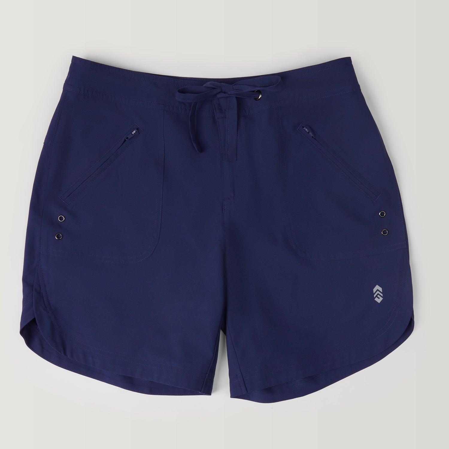 ![[Model is wearing a size Small.] Woman wearing Free Country Women's 7" Bermuda Board Short in Marine, size S, made from quick drying UPF stretch performance fabric featuring a fly front zipper closure with a drawcord and two front pockets](http://freecountry.com/cdn/shop/files/SWLSS4532MARINE_2412_SS25-007-FC.jpg?v=1750709319&width=860)