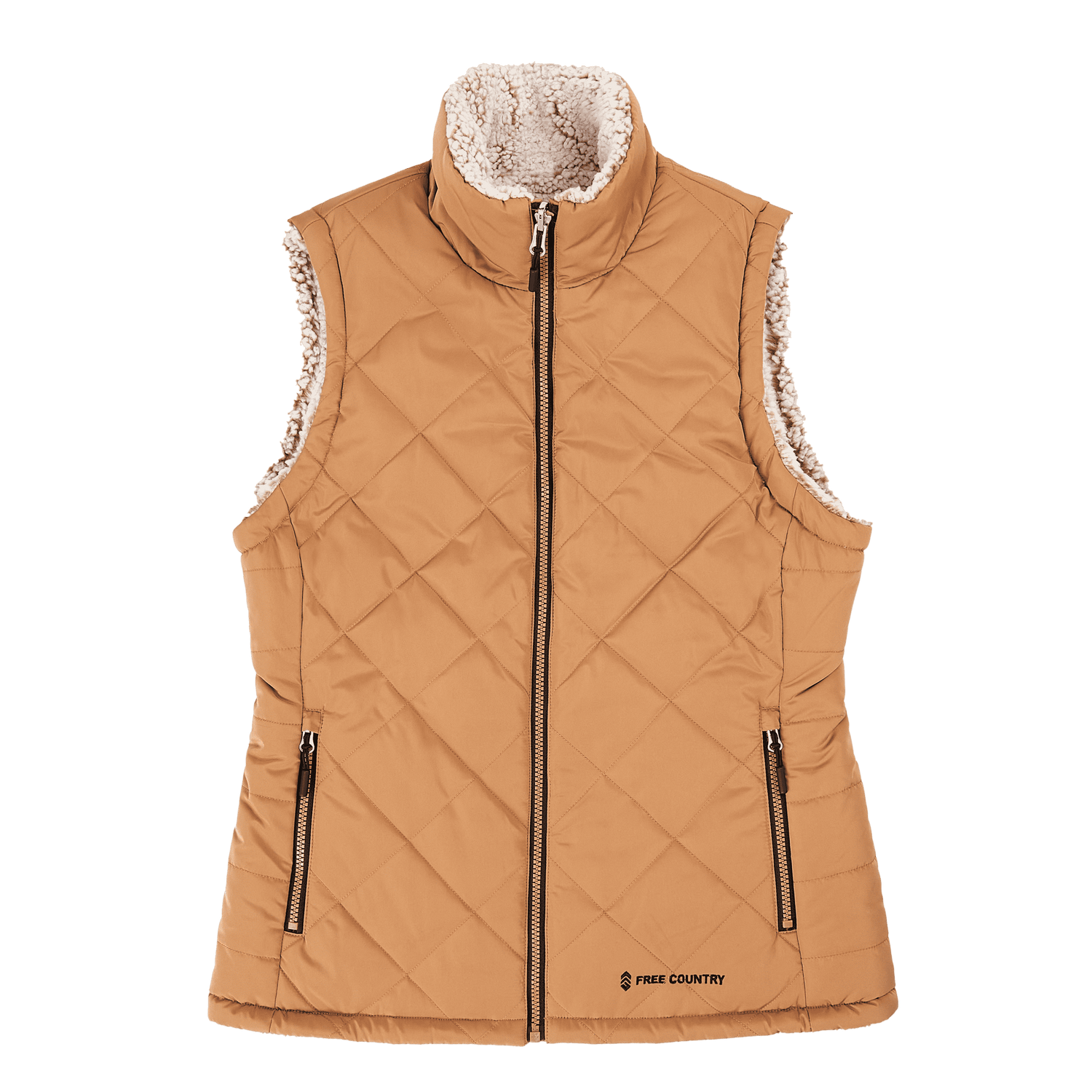![[Megan is 5'6" wearing a size Small.] Woman wearing Free Country Women's Expedition Stratus Lite Reversible Vest in tan with a full front zipper opening, soft lining, recycled polyester filling, and water resistant and wind resistant performance fabric, light grey background. Best women’s vest for chilly weather.](http://freecountry.com/cdn/shop/files/513LOF3624RCAMEL_2306_FW-020.jpg?v=1745942242&width=860)