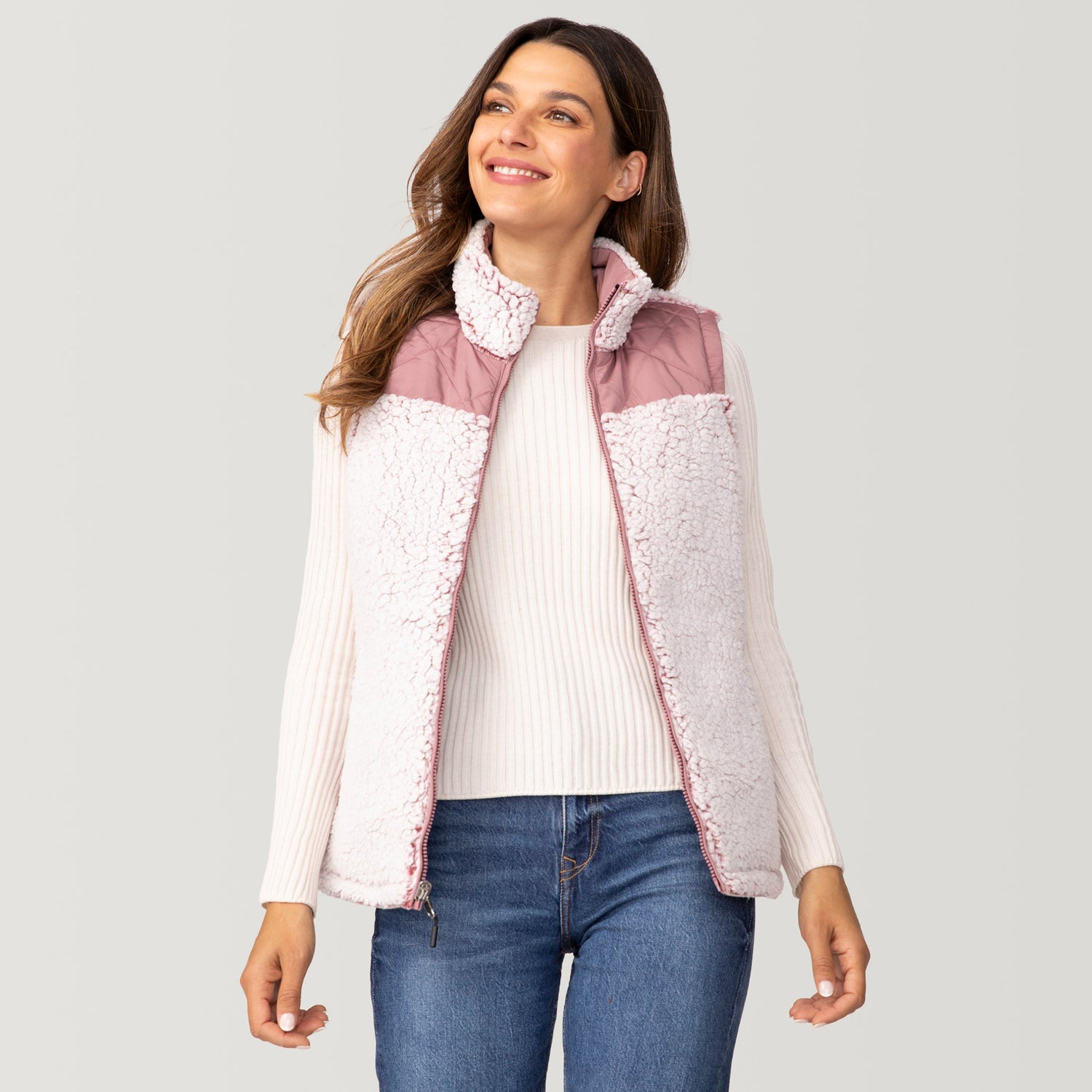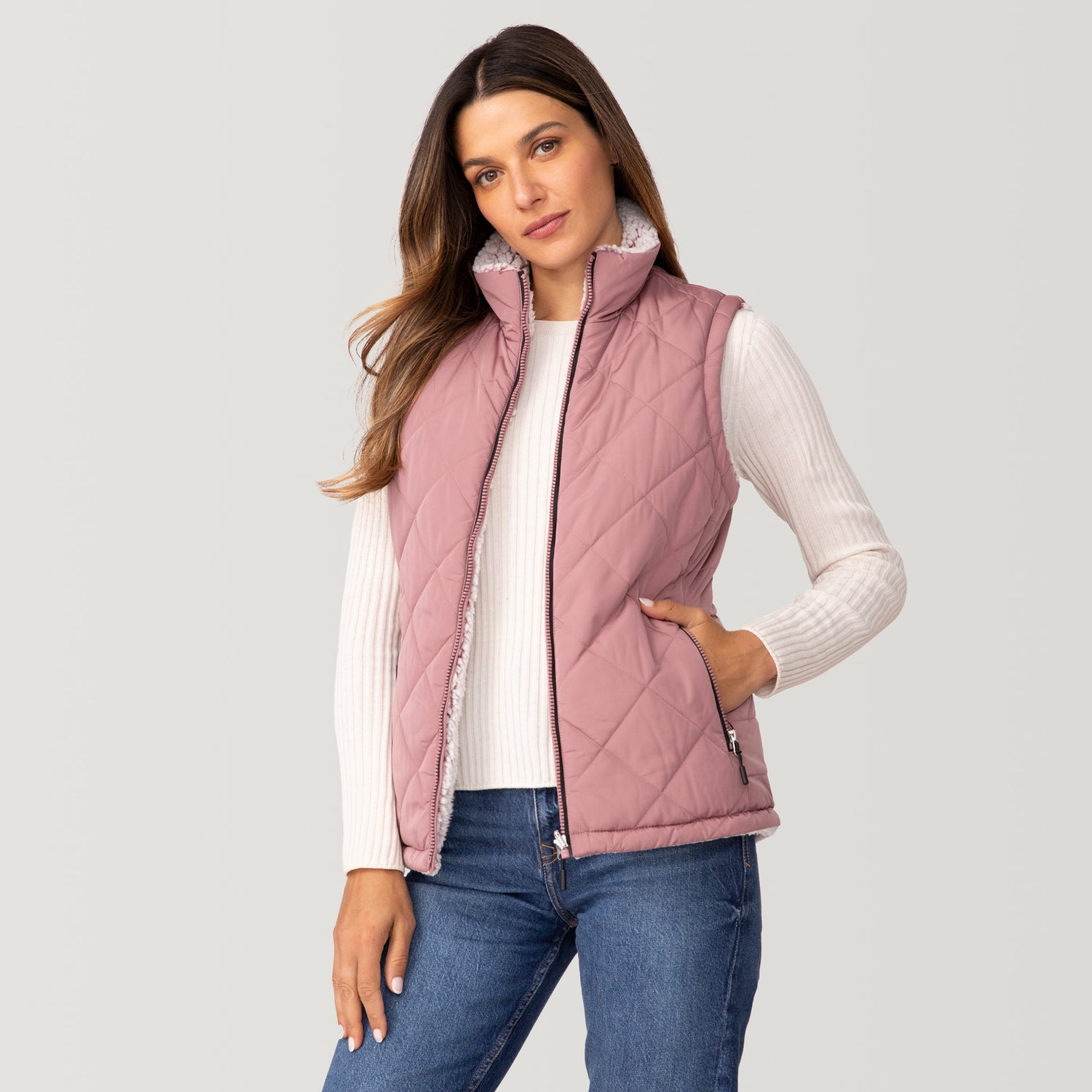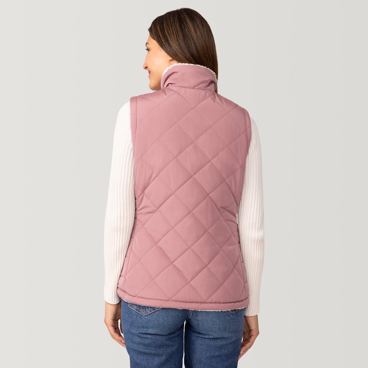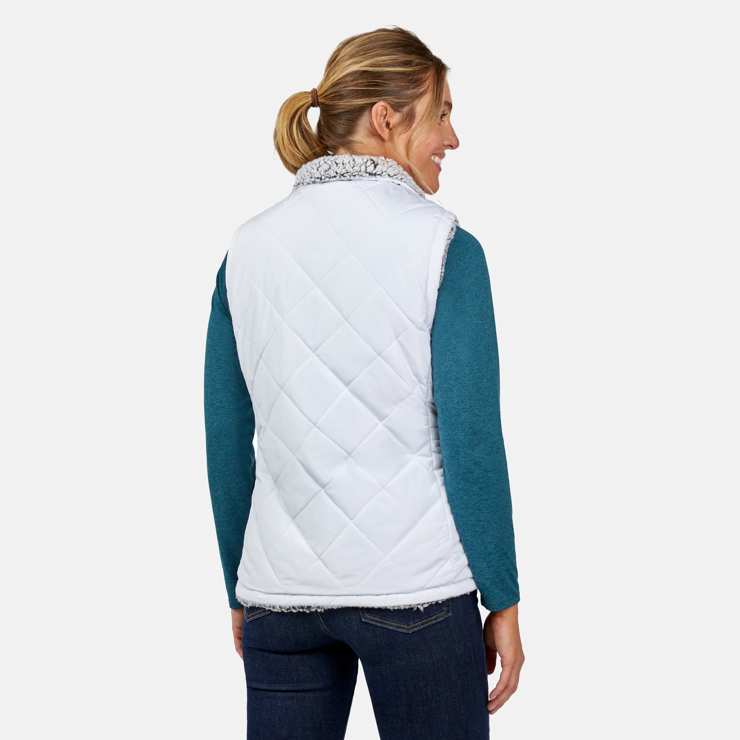 Prepare to take on the great outdoors with this versatile and stylish vest that complements your active lifestyle. You’ll look good and feel good knowing it’s crafted with a 100% recycled poly shell fabric, and REPREVE® high-quality synthetic fill made from recycled plastic bottles. And the best part? It's like getting two vests in one! With its reversible design, you can switch from a cozy two-tone Sherpa to a chic quilted overlay, matching your mood and outdoor setting with ease. It's designed for your comfort and protection: The wind-resistant feature keeps you shielded from chilly gusts, and the stand collar adds an extra layer of protection against the elements—so you can focus on conquering the great outdoors.