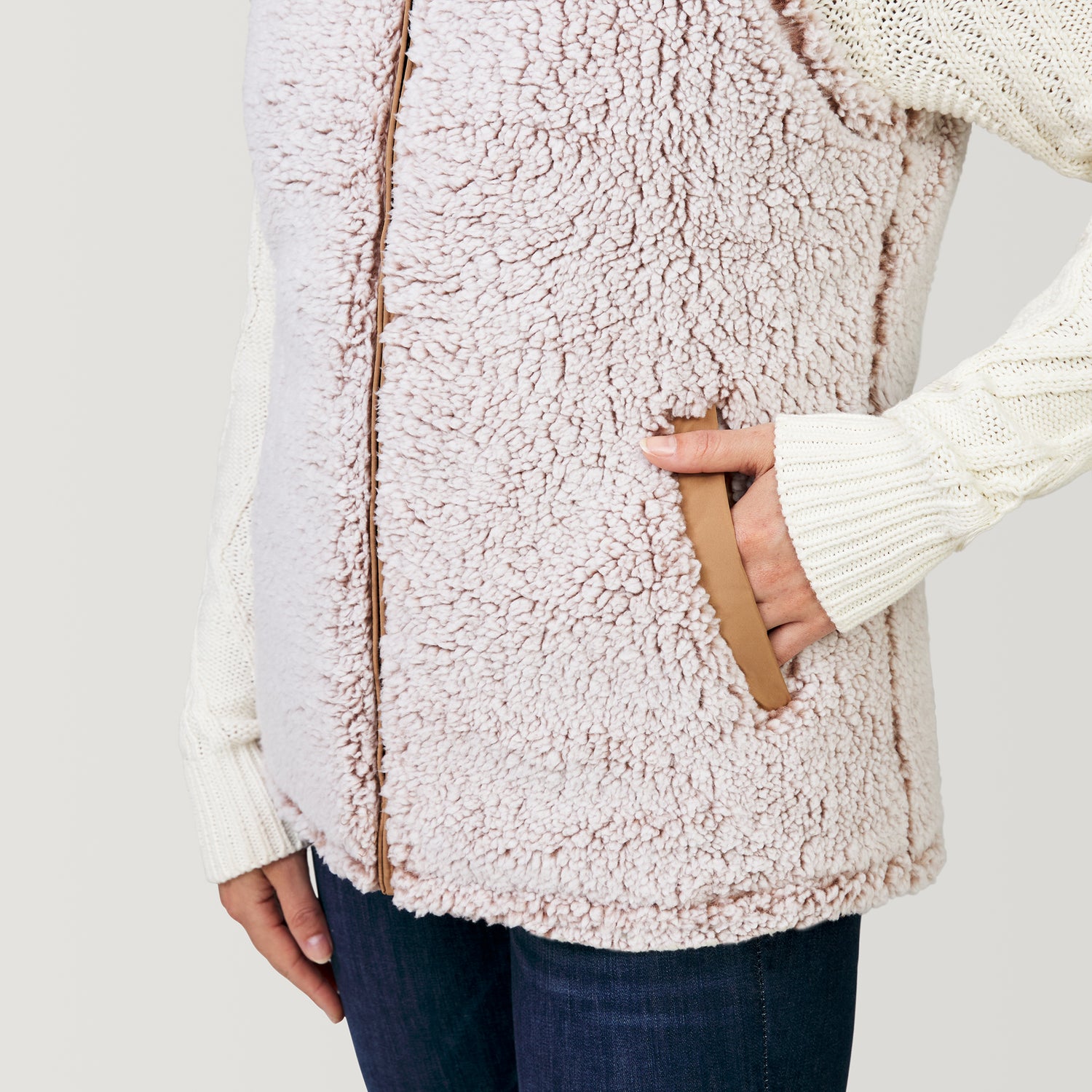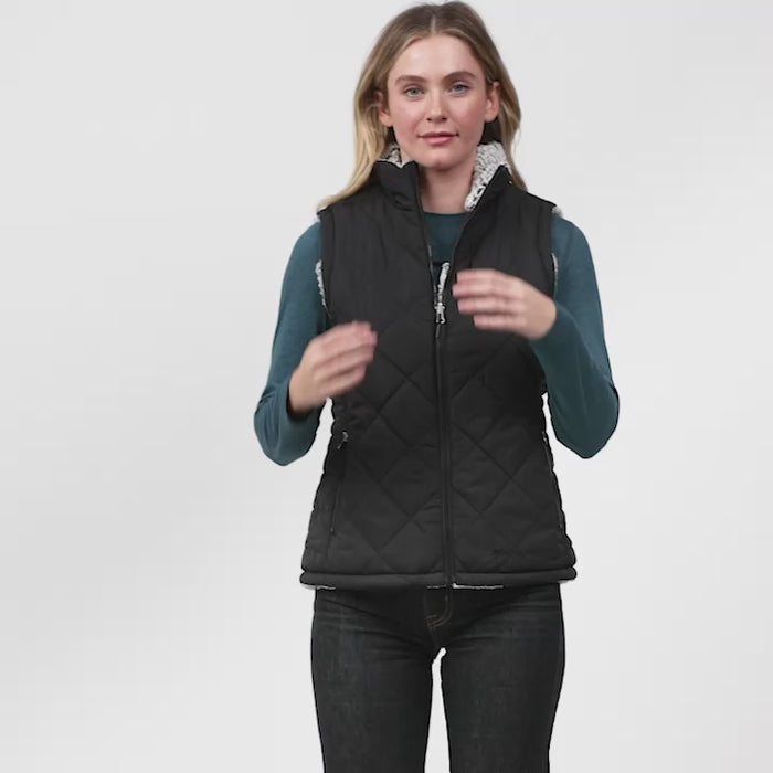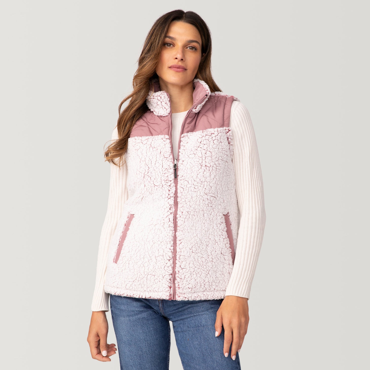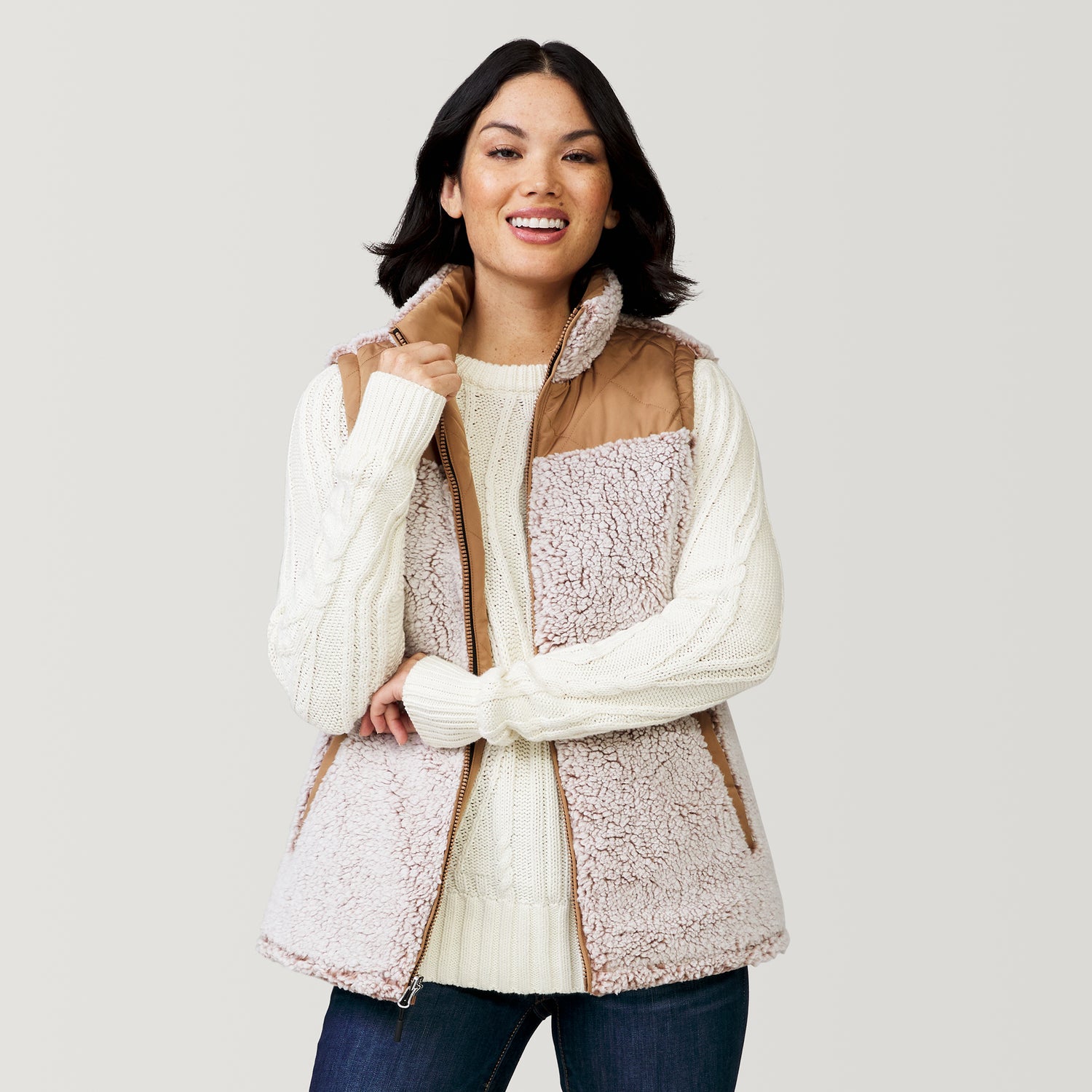 Prepare to take on the great outdoors with this versatile and stylish vest that complements your active lifestyle. You’ll look good and feel good knowing it’s crafted with a 100% recycled poly shell fabric, and REPREVE® high-quality synthetic fill made from recycled plastic bottles. And the best part? It's like getting two vests in one! With its reversible design, you can switch from a cozy two-tone Sherpa to a chic quilted overlay, matching your mood and outdoor setting with ease. It's designed for your comfort and protection: The wind-resistant feature keeps you shielded from chilly gusts, and the stand collar adds an extra layer of protection against the elements—so you can focus on conquering the great outdoors.
