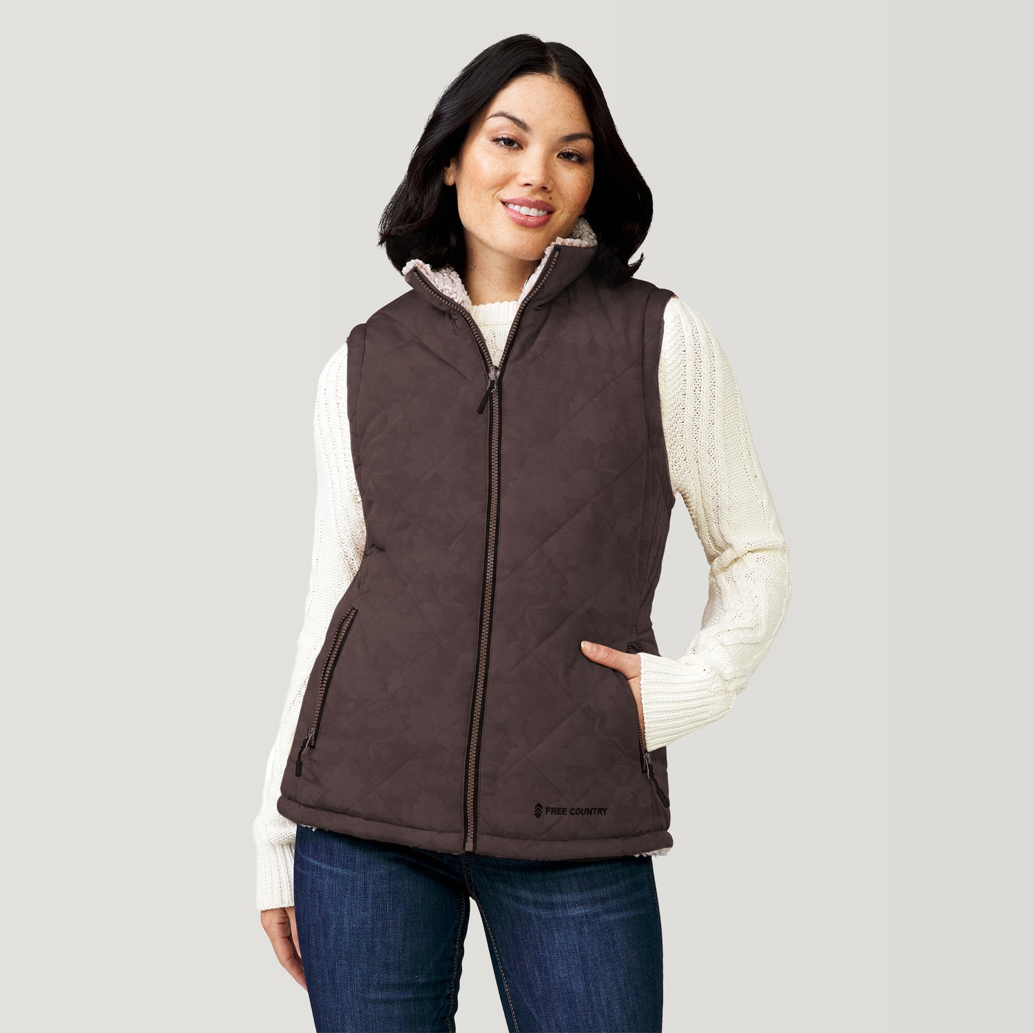 ![[Megan is 5'6" wearing a size Small.] Woman wearing Free Country Women's Expedition Stratus Lite Reversible Vest in dark brown with a full front zipper opening, soft lining, recycled polyester filling, and water resistant and wind resistant performance fabric, light grey background. Best women’s vest for chilly weather.](http://freecountry.com/cdn/shop/files/513LOF3624RDARKOAK_2306_FW032.jpg?v=1745942122&width=860)