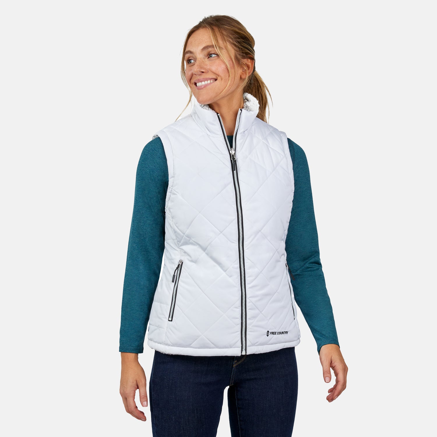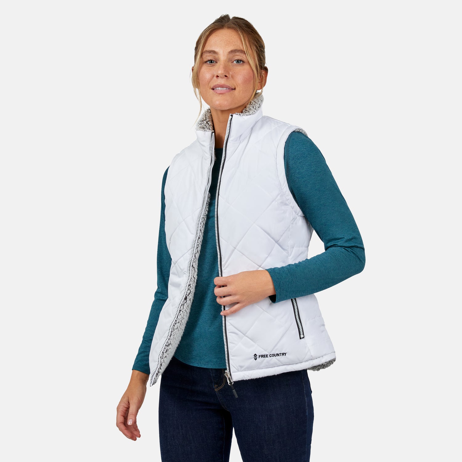 ![[Model is wearing a size Small.] Woman wearing Free Country Women's Expedition Stratus Lite Reversible Vest in white with a full front zipper opening, soft lining, recycled polyester filling, and water resistant and wind resistant performance fabric, light grey background. Best women’s vest for chilly weather.](http://freecountry.com/cdn/shop/files/513LOF3624RWHITE_005.jpg?v=1752162307&width=860)