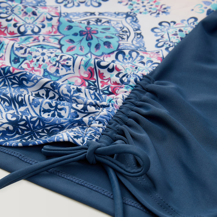 Women's Mediterranean Tile Double Strap Keyhole Tankini Top
